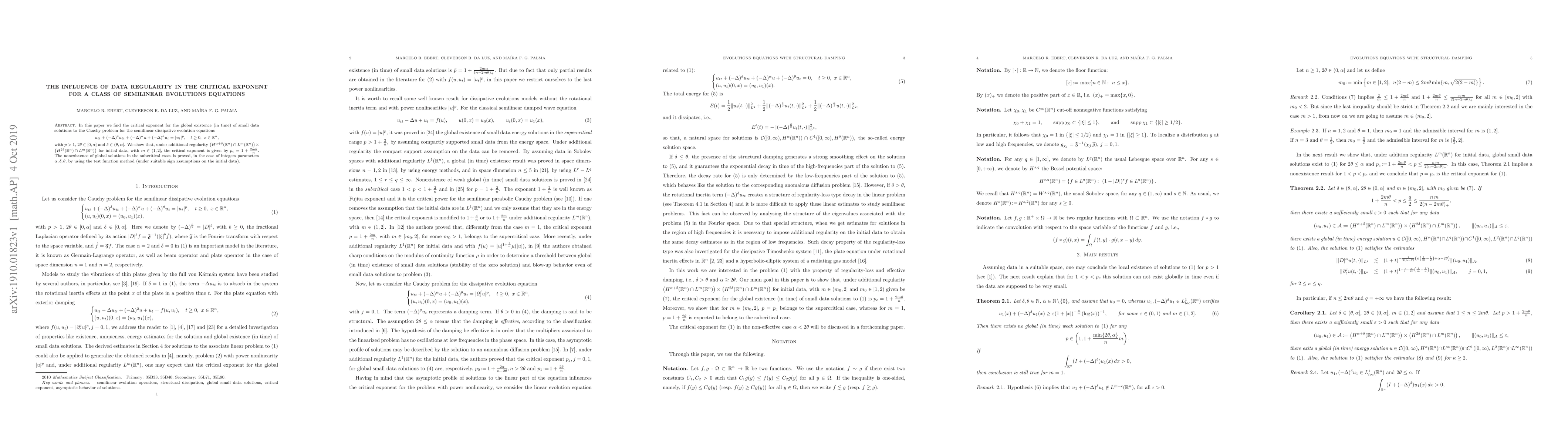 This research paper studies the global existence of solutions to semilinear evolution equations, finding that a critical exponent determines the lifespan of solutions based on parameters like $p$, $ heta$, and the dimension $n$.