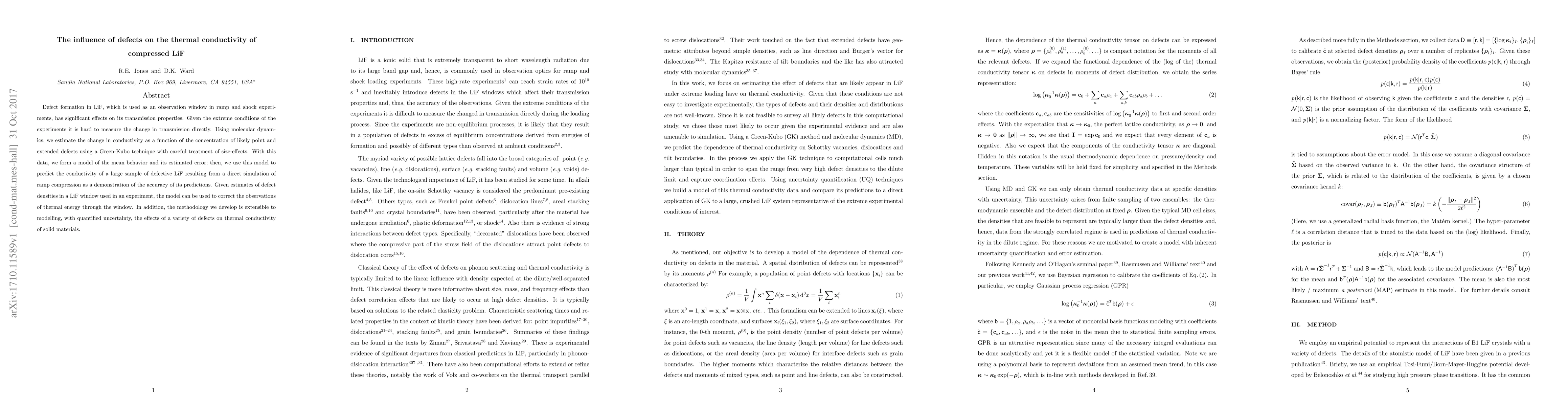 The study utilizes molecular dynamics simulations and Green-Kubo techniques to estimate the change in thermal conductivity of compressed LiF as a function of defect concentration, including point and extended defects.