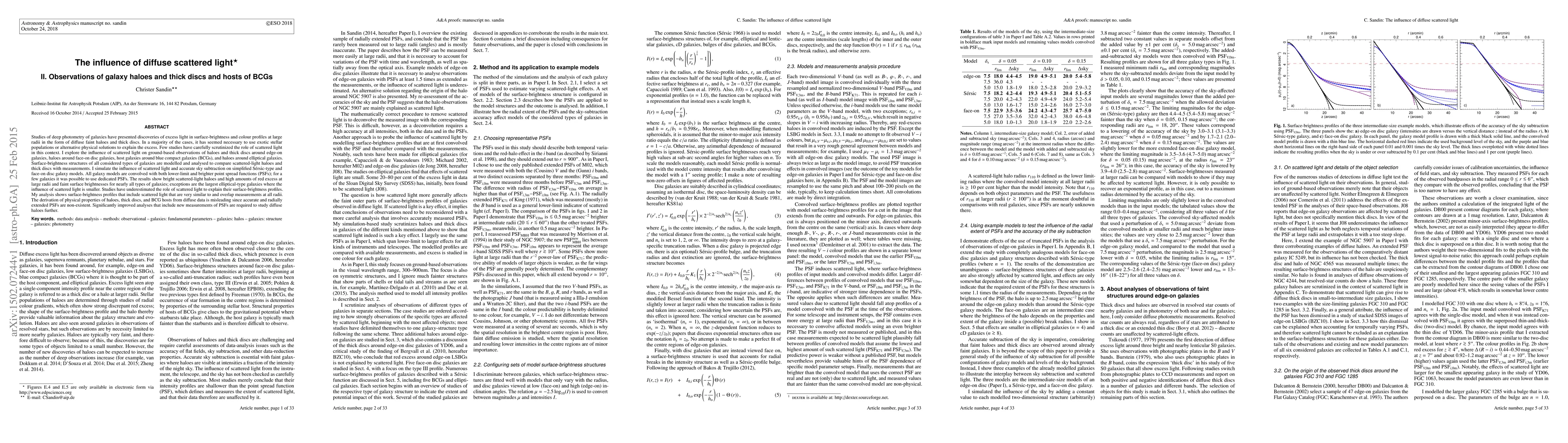 Studies of deep photometry of galaxies have presented discoveries of excess light in surface-brightness and colour profiles at large radii in the form of diffuse faint haloes and thick discs. In a majority of the cases, it has seemed necessary to use exotic stellar populations or alternative physical solutions to explain the excess. Few studies have carefully scrutinized the role of scattered light in this context. I explore the influence of scattered light on ground-based observations of haloes and thick discs around edge-on galaxies, haloes around face-on disc galaxies, host galaxies around blue compact galaxies (BCGs), and haloes around elliptical galaxies. Surface-brightness structures of all considered types of galaxies are modelled and analysed to compare scattered-light haloes and thick discs with measurements. I simulate the influence of scattered light and accurate sky subtraction on simplified S\'ersic-type and face-on disc galaxy models. All galaxy models are convolved with both lower-limit and brighter point spread functions (PSFs); for a few galaxies it was possible to use dedicated PSFs. The results show bright scattered-light haloes and high amounts of red excess at large radii and faint surface brightnesses for nearly all types of galaxies; exceptions are the largest elliptical-type galaxies where the influence of scattered light is smaller. Studies have underestimated the role of scattered light to explain their surface-brightness profiles. My analysis shows surface-brightness profiles that include scattered light that are very similar to and overlap measurements at all radii. The derivation of physical properties of haloes, thick discs, and BCG hosts from diffuse data is misleading since accurate and radially extended PSFs are non-existent. Significantly improved analyses that include new measurements of PSFs are required to study diffuse haloes further.