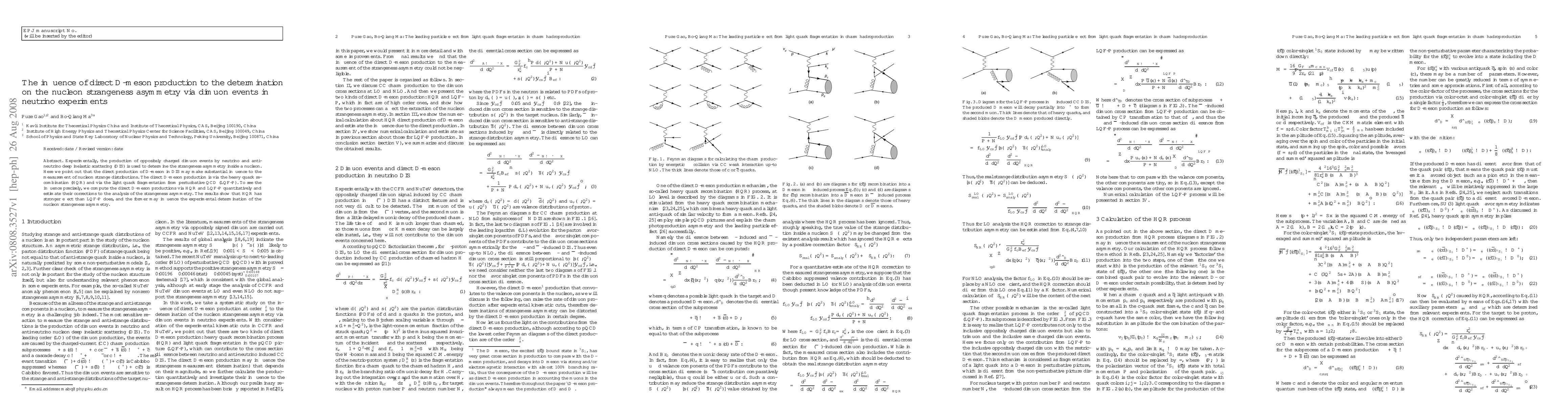 Experimentally, the production of oppositely charged dimuon events by neutrino and anti-neutrino deep inelastic scattering (DIS) is used to determine the strangeness asymmetry inside a nucleon. Here we point out that the direct production of $D$-meson in DIS may make substantial influence to the measurement of nucleon strange distributions. The direct $D$-meson production is via the heavy quark recombination (HQR) and via the light quark fragmentation from perturbative QCD (LQF-P). To see the influence precisely, we compute the direct $D$-meson productions via HQR and LQF-P quantitatively and estimate their corrections to the analysis of the strangeness asymmetry. The results show that HQR has stronger effect than LQF-P does, and the former may influence the experimental determination of the nucleon strangeness asymmetry.