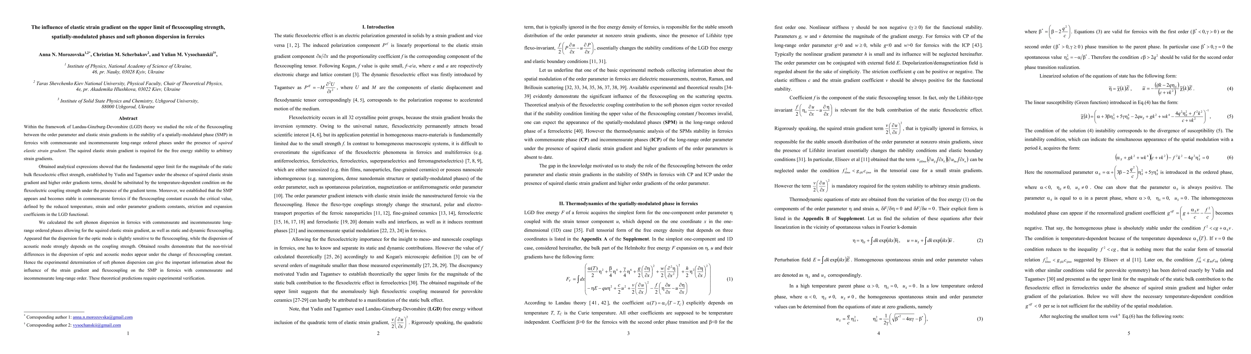 This study, using Landau-Ginzburg-Devonshire theory, reveals that elastic strain gradients significantly influence the upper limit of flexocoupling strength in ferroics, stabilizing spatially-modulated phases. The research also shows temperature-dependent conditions on flexoelectric coupling strength and its impact on soft phonon dispersion, with distinct effects on optic and acoustic modes.