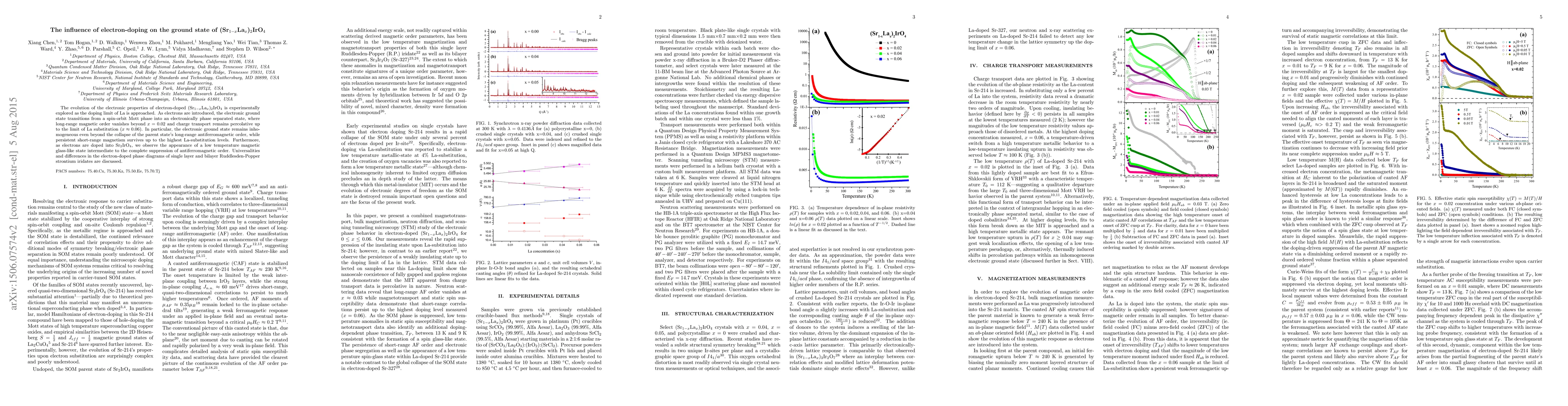 The evolution of the electronic properties of electron-doped (Sr{1-x}La{x})2IrO4 is experimentally explored as the doping limit of La is approached. As electrons are introduced, the electronic ground state transitions from a spin-orbit Mott phase into an electronically phase separated state, where long-range magnetic order vanishes beyond x = 0.02 and charge transport remains percolative up to the limit of La substitution (x~0.06). In particular, the electronic ground state remains inhomogeneous even beyond the collapse of the parent state's long-range antiferromagnetic order, while persistent short-range magnetism survives up to the highest La-substitution levels. Furthermore, as electrons are doped into Sr2IrO4, we observe the appearance of a low temperature magnetic glass-like state intermediate to the complete suppression of antiferromagnetic order. Universalities and differences in the electron-doped phase diagrams of single layer and bilayer Ruddlesden-Popper strontium iridates are discussed.