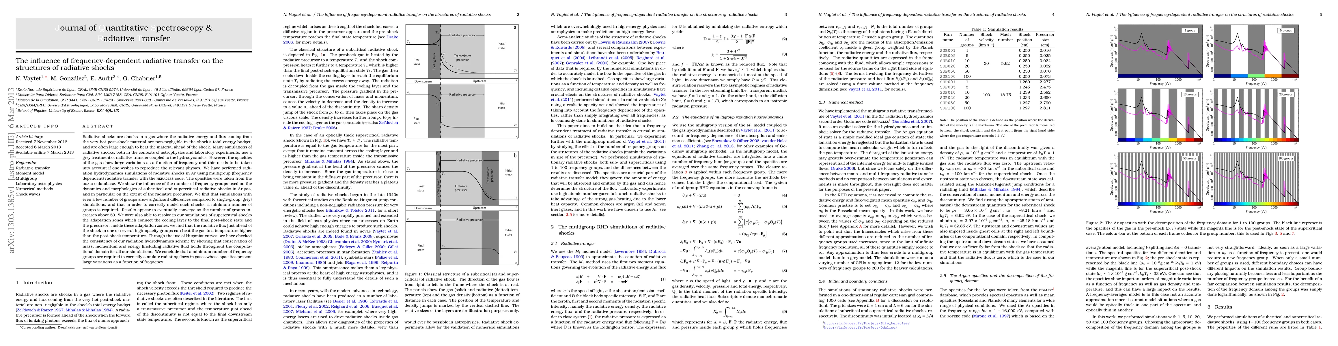 Radiative shocks are shocks in a gas where the radiative energy and flux coming from the very hot post-shock material are non-negligible in the shock's total energy budget, and are often large enough to heat the material ahead of the shock. Many simulations of radiative shocks, both in the contexts of astrophysics and laboratory experiments, use a grey treatment of radiative transfer coupled to the hydrodynamics. However, the opacities of the gas show large variations as a function of frequency and this needs to be taken into account if one wishes to reproduce the relevant physics. We have performed radiation hydrodynamics simulations of radiative shocks in Ar using multigroup (frequency dependent) radiative transfer with the HERACLES code. The opacities were taken from the ODALISC database. We show the influence of the number of frequency groups used on the dynamics and morphologies of subcritical and supercritical radiative shocks in Ar gas, and in particular on the extent of the radiative precursor. We find that simulations with even a low number of groups show significant differences compared to single-group (grey) simulations, and that in order to correctly model such shocks, a minimum number of groups is required. Results appear to eventually converge as the number of groups increases above 50. We were also able to resolve in our simulations of supercritical shocks the adaptation zones which connect the cooling layer to the final post-shock state and the precursor. Inside these adaptation zones, we find that the radiative flux just ahead of the shock in one or several high-opacity groups can heat the gas to a temperature higher than the post-shock temperature. Through the use of Hugoniot curves, we have checked the consistency of our radiation hydrodynamics scheme by showing that conservation of mass, momentum and energy (including radiative flux) holds. ABRIDGED.