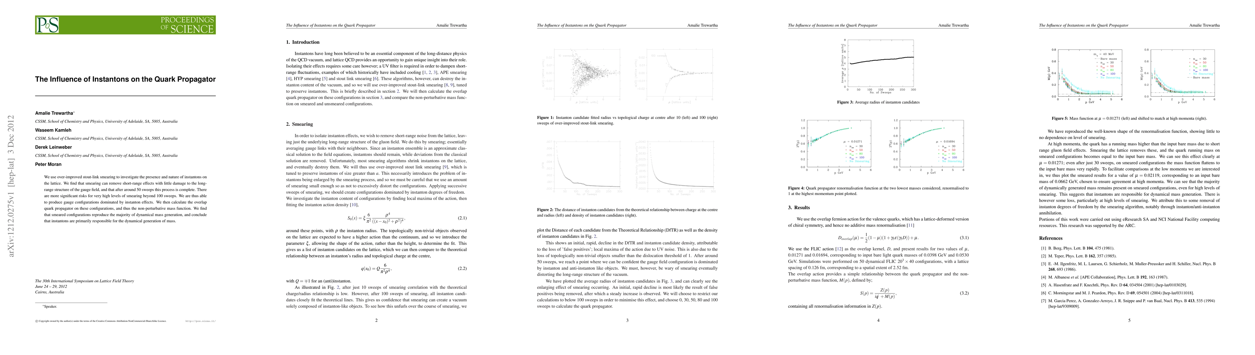 We use over-improved stout-link smearing to investigate the presence and nature of instantons on the lattice. We find that smearing can remove short-range effects with little damage to the long-range structure of the gauge field, and that after around 50 sweeps this process is complete. There are more significant risks for very high levels of smearing beyond 100 sweeps. We are thus able to produce gauge configurations dominated by instanton effects. We then calculate the overlap quark propagator on these configurations, and thus the non-perturbative mass function. We find that smeared configurations reproduce the majority of dynamical mass generation, and conclude that instantons are primarily responsible for the dynamical generation of mass.