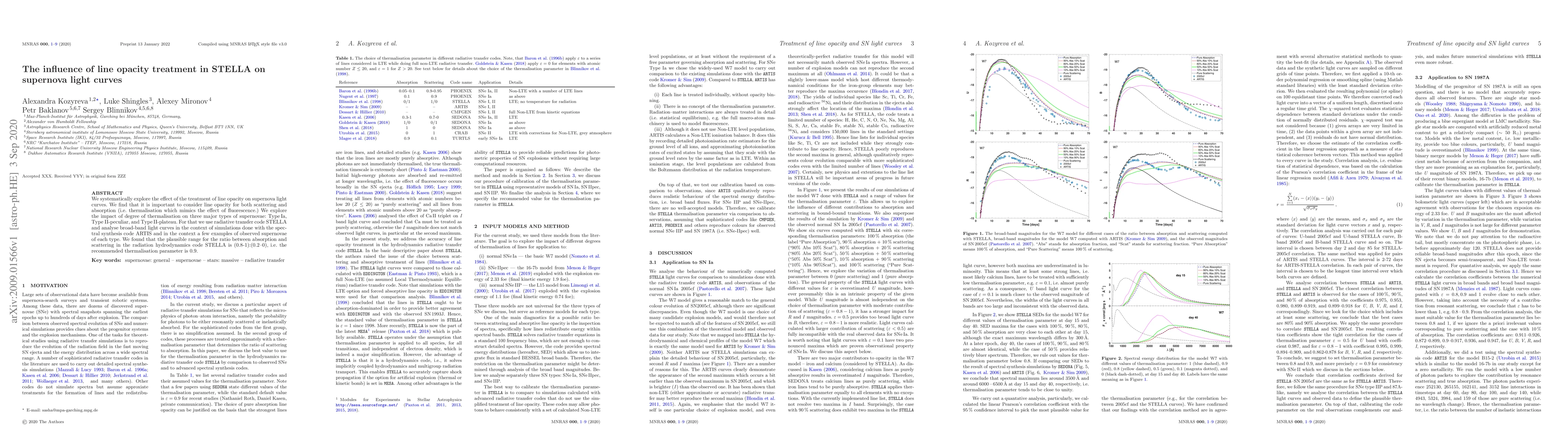 We systematically explore the effect of the treatment of line opacity on supernova light curves. We find that it is important to consider line opacity for both scattering and absorption (i.e. thermalisation which mimics the effect of fluorescence.) We explore the impact of degree of thermalisation on three major types of supernovae: Type Ia, Type II-peculiar, and Type II-plateau. For that we use radiative transfer code STELLA and analyse broad-band light curves in the context of simulations done with the spectral synthesis code ARTIS and in the context a few examples of observed supernovae of each type. We found that the plausible range for the ratio between absorption and scattering in the radiation hydrodynamics code STELLA is (0.8-1):(0.2-0), i.e. the recommended thermalisation parameter is 0.9.