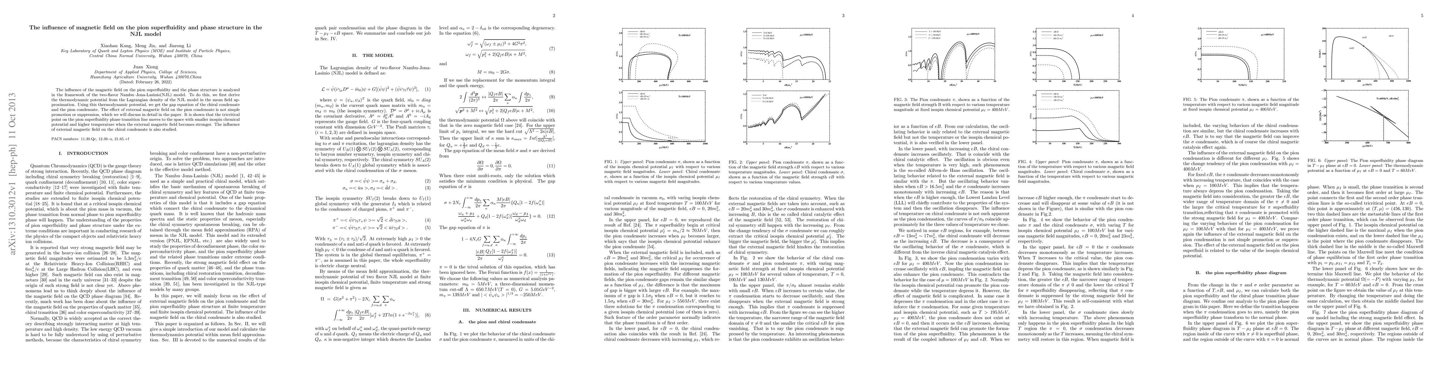 The influence of the magnetic field on the pion superfluidity and the phase structure is analyzed in the framework of the two-flavor Nambu--Jona-Lasinio(NJL) model. To do this, we first derive the thermodynamic potential from the Lagrangian density of the NJL model in the mean field approximation. Using this thermodynamic potential, we get the gap equation of the chiral condensate and the pion condensate. The effect of external magnetic field on the pion condensate is not simple promotion or suppression, which we will discuss in detail in the paper. It is shown that the tricritical point on the pion superfluidity phase transition line moves to the space with smaller isospin chemical potential and higher temperature when the external magnetic field becomes stronger. The influence of external magnetic field on the chiral condensate is also studied.