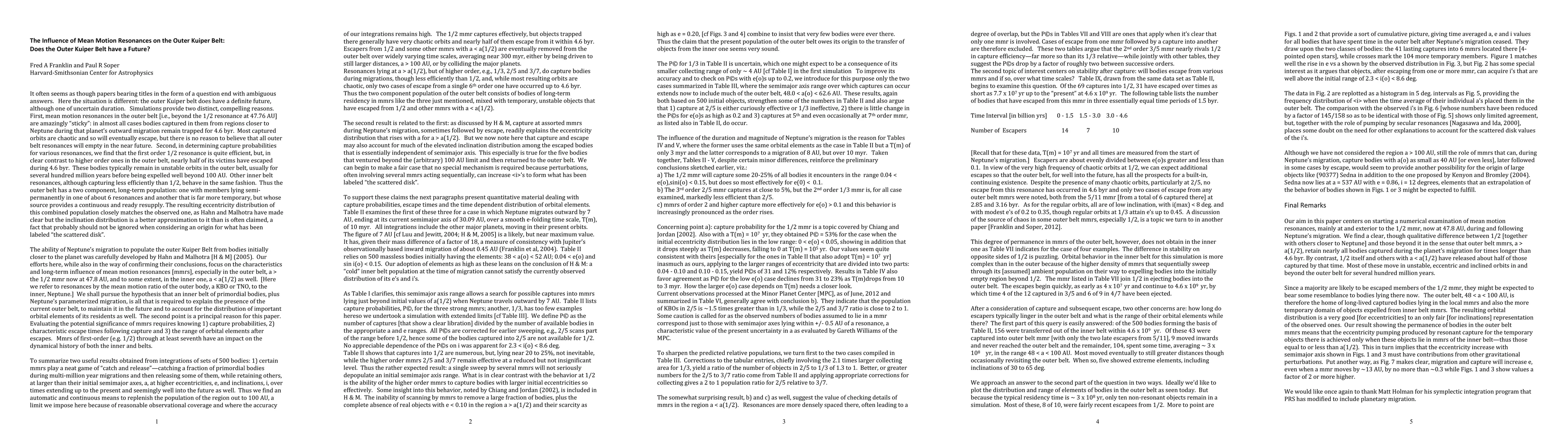 The outer Kuiper Belt has a definite future despite uncertain duration, primarily due to the "stickiness" of mean motion resonances beyond the 1/2 resonance, which trap bodies for billions of years. A continuous resupply from unstable orbits ensures a long-term population, matching the observed eccentricity distribution.