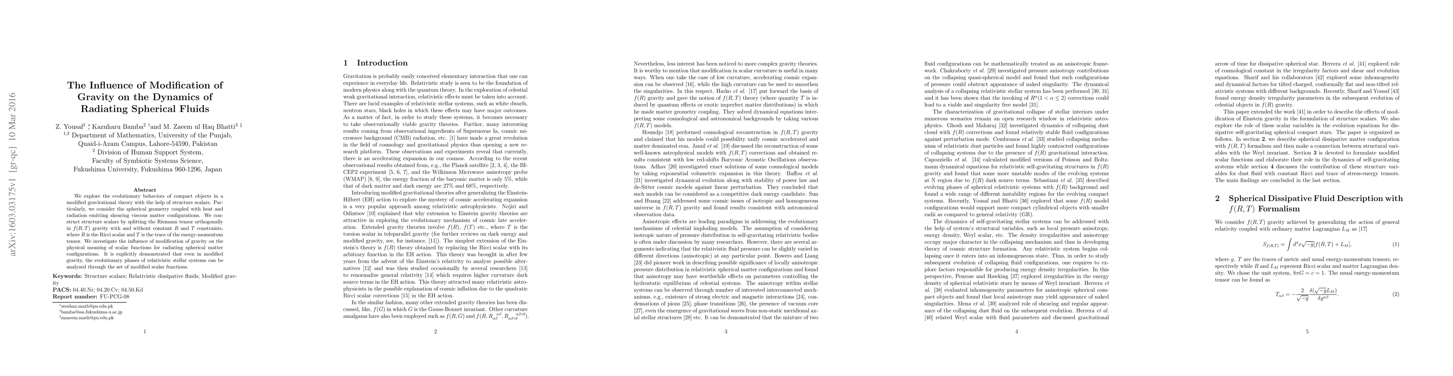 This paper explores how modified gravity affects the dynamics of radiating spherical fluids, using structure scalars to analyze evolutionary behaviors in a modified gravitational theory with heat and radiation emitting matter configurations.