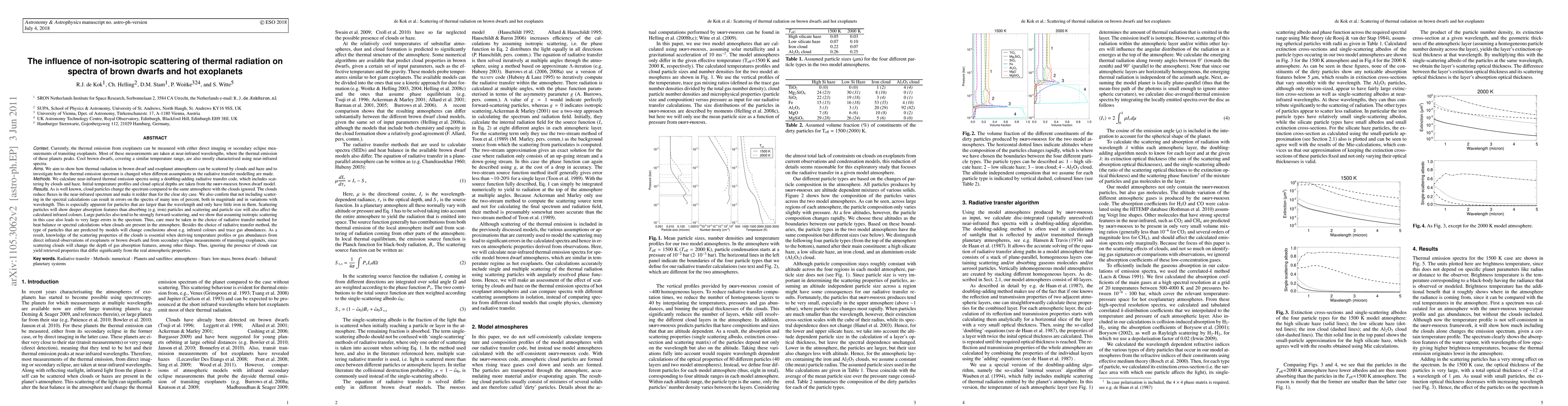 (abridged) We calculate near-infrared thermal emission spectra using a doubling-adding radiative transfer code, which includes scattering by clouds and haze. Initial temperature profiles and cloud optical depths are taken from the drift-phoenix brown dwarf model. As is well known, cloud particles change the spectrum compared to when clouds are ignored. The clouds reduce fluxes in the near-infrared spectrum and make it redder than for the clear sky case. We also confirm that not including scattering in the spectral calculations can result in errors on the spectra of many tens of percent, both in magnitude and in variations with wavelength. This is especially apparent for particles that are larger than the wavelength and only have little iron in them. Scattering particles will show deeper absorption features than absorbing (e.g. iron) particles and particle size will also affect the calculated infrared colours. Large particles also tend to be strongly forward-scattering, and we show that assuming isotropic scattering in this case also leads to very large errors in the spectrum. Thus, care must be taken in the choice of radiative transfer method for heat balance or spectral calculations when clouds are present in the atmosphere. Besides the choice of radiative transfer method, the type of particles that are predicted by models will change conclusions about e.g. infrared colours and trace gas abundances. As a result, knowledge of the scattering properties of the clouds is essential when deriving temperature profiles or gas abundances from direct infrared observations of exoplanets or brown dwarfs and from secondary eclipse measurements of transiting exoplanets, since scattering clouds will change the depth of gas absorption features, among other things. Thus, ignoring the presence of clouds can yield retrieved properties that differ significantly from the real atmospheric properties.