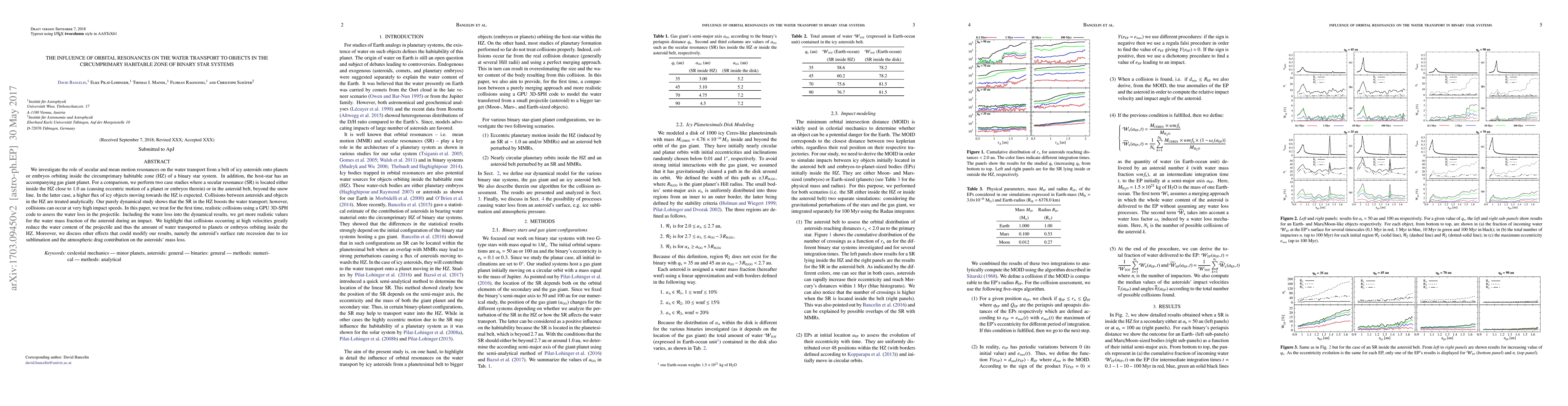 This paper examines how orbital resonances influence water transport to planets within the circumprimary habitable zone of binary star systems, using a GPU 3D-SPH code to model realistic collision scenarios. It finds that while secular resonances boost water transport, high-speed collisions significantly reduce the water content of icy projectiles, thus lowering the overall water delivered to the habitable zone.