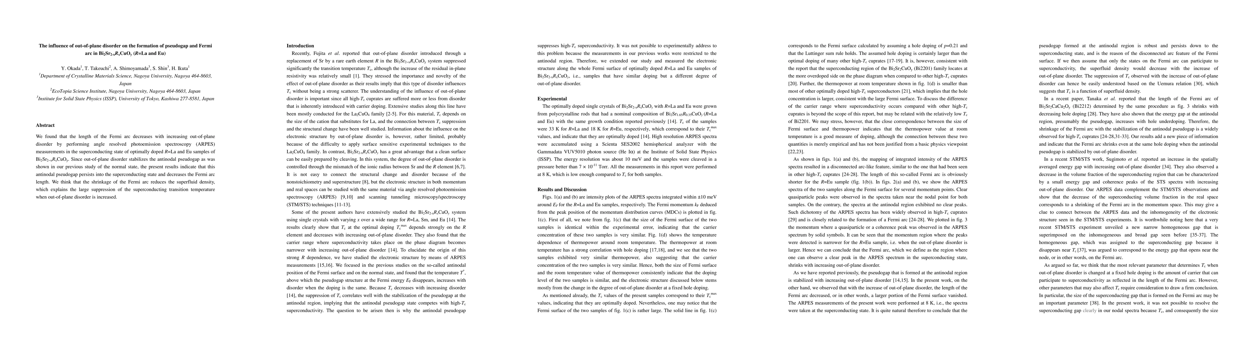 This study reveals that increased out-of-plane disorder reduces the length of the Fermi arc in Bi2Sr2-xRxCuOy (R=La and Eu) as observed via ARPES, indicating the persistence of the antinodal pseudogap into the superconducting state. The shrinkage of the Fermi arc correlates with a significant suppression of the superconducting transition temperature.