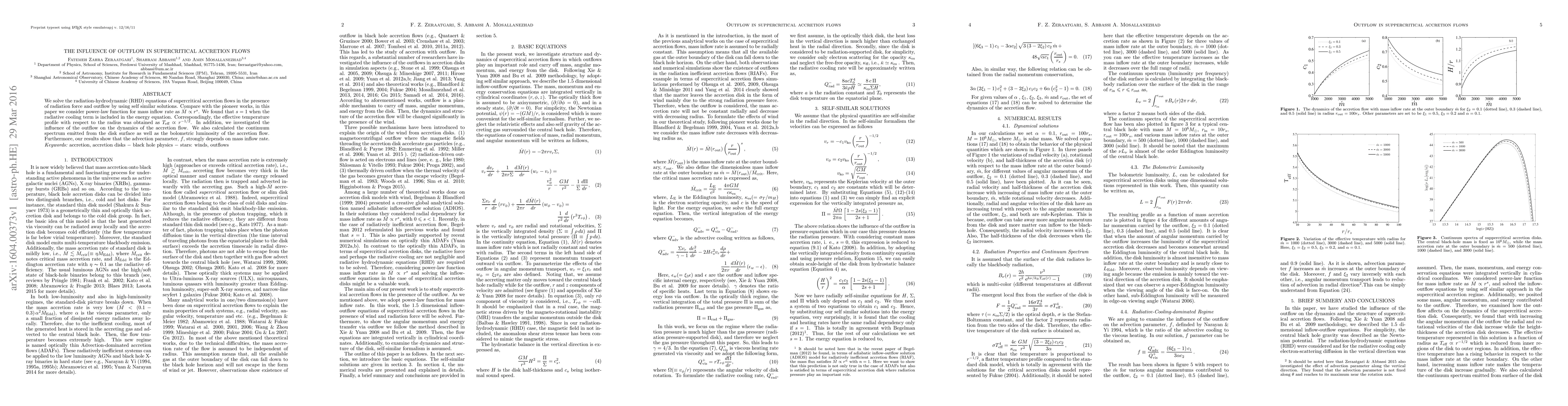 This paper investigates supercritical accretion flows using radiation-hydrodynamic equations, finding that $ \dot{M} \propto r^{1} $ when radiative cooling is included, leading to a $ T_{\text{eff}} \varpropto r^{-1/2} $ temperature profile. The study also examines the impact of outflow dynamics and reveals a strong dependence of the advection parameter on the mass inflow rate.