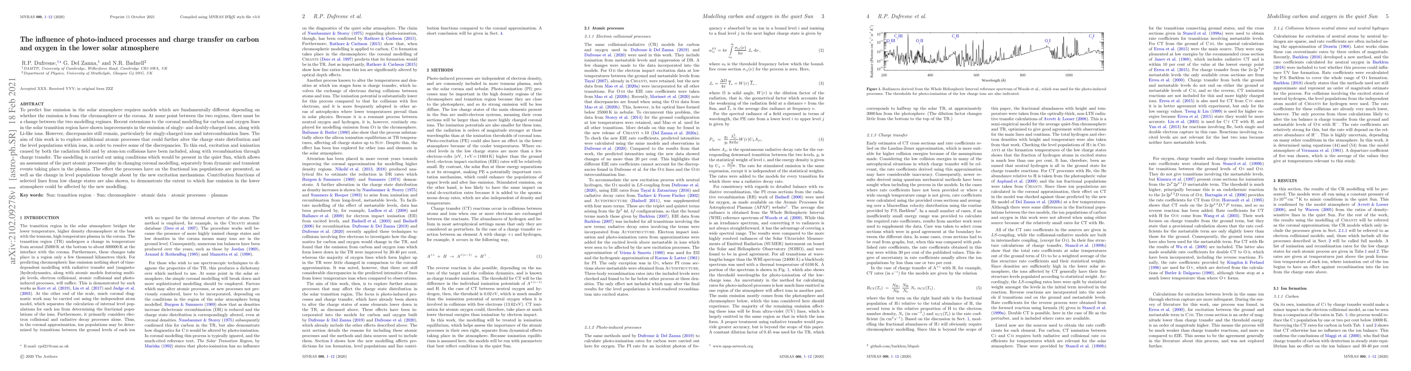 To predict line emission in the solar atmosphere requires models which are fundamentally different depending on whether the emission is from the chromosphere or the corona. At some point between the two regions, there must be a change between the two modelling regimes. Recent extensions to the coronal modelling for carbon and oxygen lines in the solar transition region have shown improvements in the emission of singly- and doubly-charged ions, along with Li-like ions. However, discrepancies still remain, particularly for singly-charged ions and intercombination lines. The aim of this work is to explore additional atomic processes that could further alter the charge state distribution and the level populations within ions, in order to resolve some of the discrepancies. To this end, excitation and ionisation caused by both the radiation field and by atom-ion collisions have been included, along with recombination through charge transfer. The modelling is carried out using conditions which would be present in the quiet Sun, which allows an assessment of the part atomic processes play in changing coronal modelling, separately from dynamic and transient events taking place in the plasma. The effect the processes have on the fractional ion populations are presented, as well as the change in level populations brought about by the new excitation mechanisms. Contribution functions of selected lines from low charge states are also shown, to demonstrate the extent to which line emission in the lower atmosphere could be affected by the new modelling.