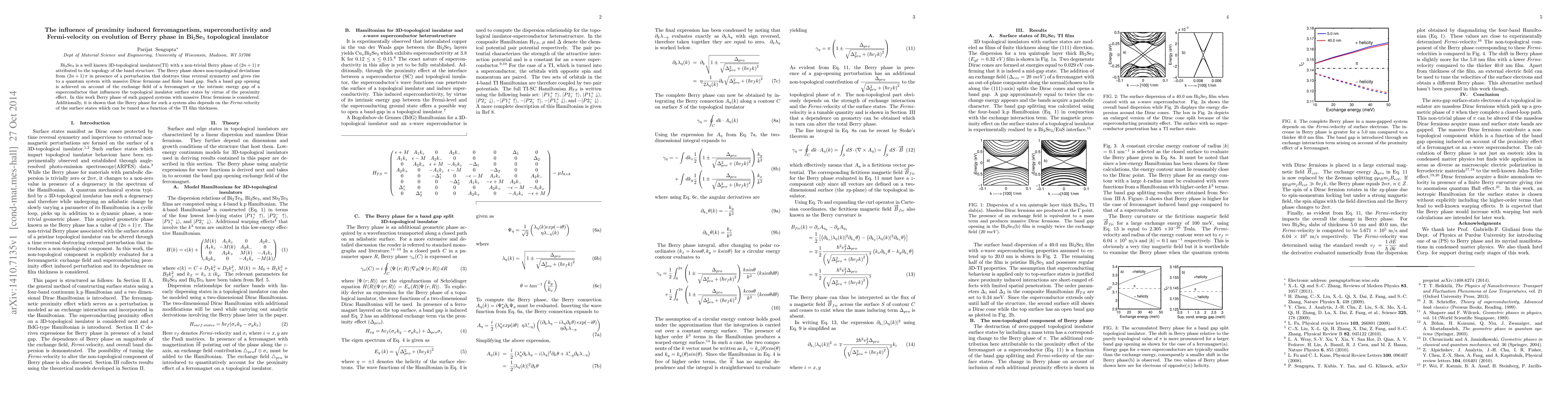 Bi$_{2}$Se$_{3}$ is a well known 3D-topological insulators(TI) with a non-trivial Berry phase of $ \left(2n+1\right)\pi $ attributed to the topology of the band structure. The Berry phase shows non-topological deviations from $ \left(2n+1\right)\pi $ in presence of a perturbation that destroys time reversal symmetry and gives rise to a quantum system with massive Dirac fermions and finite band gap. Such a band gap opening is achieved on account of the exchange field of a ferromagnet or the intrinsic energy gap of a superconductor that influences the topological insulator surface states by virtue of the proximity effect. In this work Berry phase of such gapped systems with massive Dirac fermions is considered. Additionally, it is shown that the Berry phase for such a system also depends on the \textit{Fermi}-velocity of the surface states which can be tuned as a function of the TI film thickness.