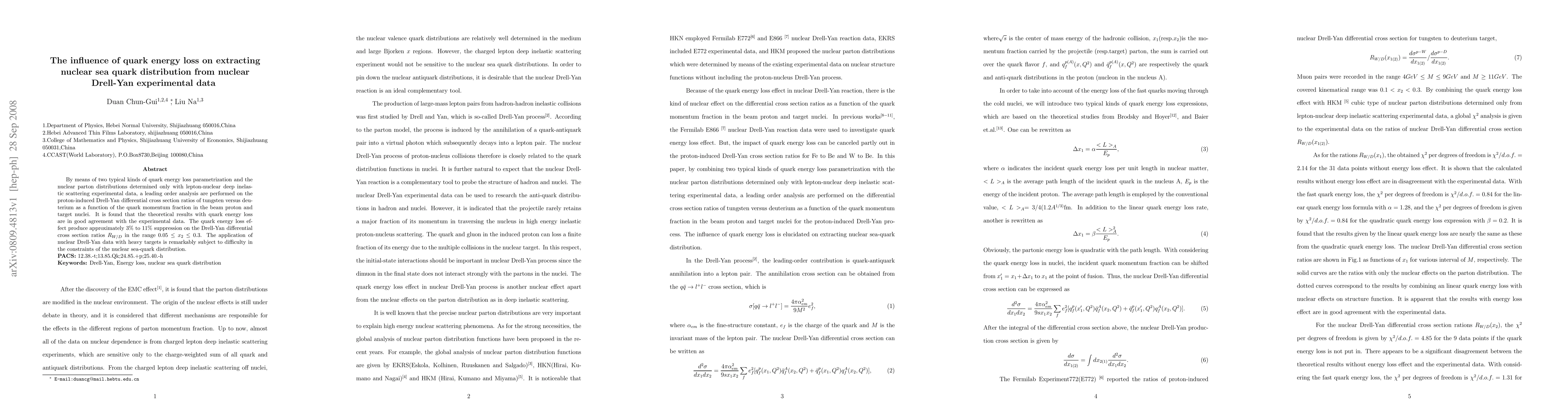 This study investigates the impact of quark energy loss on extracting nuclear sea quark distributions using nuclear Drell-Yan data, finding that quark energy loss causes a 3% to 11% suppression in cross section ratios. The results suggest that quark energy loss effects are crucial for accurately modeling nuclear Drell-Yan processes.