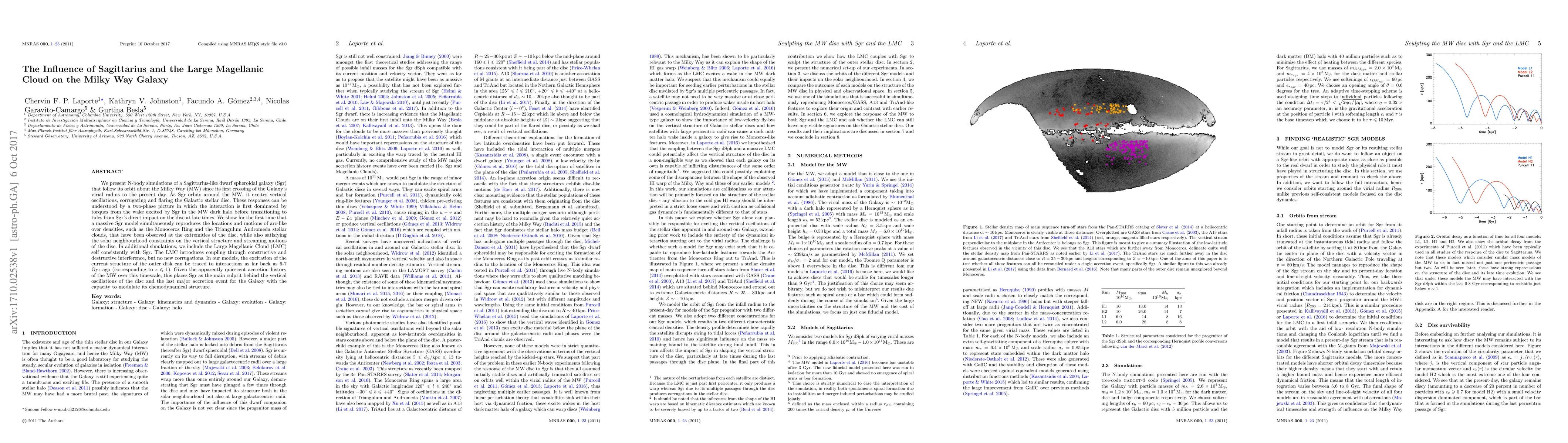 We present N-body simulations of a Sagittarius-like dwarf spheroidal galaxy (Sgr) that follow its orbit about the Milky Way (MW) since its first crossing of the Galaxy's virial radius to the present day. As Sgr orbits around the MW, it excites vertical oscillations, corrugating and flaring the Galactic stellar disc. These responses can be understood by a two-phase picture in which the interaction is first dominated by torques from the wake excited by Sgr in the MW dark halo before transitioning to tides from Sgr's direct impact on the disc at late times. We show for the first time that a massive Sgr model simultaneously reproduces the locations and motions of arc-like over densities, such as the Monoceros Ring and the Triangulum Andromeda stellar clouds, that have been observed at the extremities of the disc, while also satisfying the solar neighbourhood constraints on the vertical structure and streaming motions of the disc. In additional simulations, we include the Large Magellanic Cloud (LMC) self consistently with Sgr. The LMC introduces coupling through constructive and destructive interference, but no new corrugations. In our models, the excitation of the current structure of the outer disk can be traced to interactions as far back as 6-7 Gyr ago (corresponding to $z\leq1$). Given the apparently quiescent accretion history of the MW over this timescale, this places Sgr as the main culprit behind the vertical oscillations of the disc and the last major accretion event for the Galaxy with the capacity to modulate its chemodynamical structure.