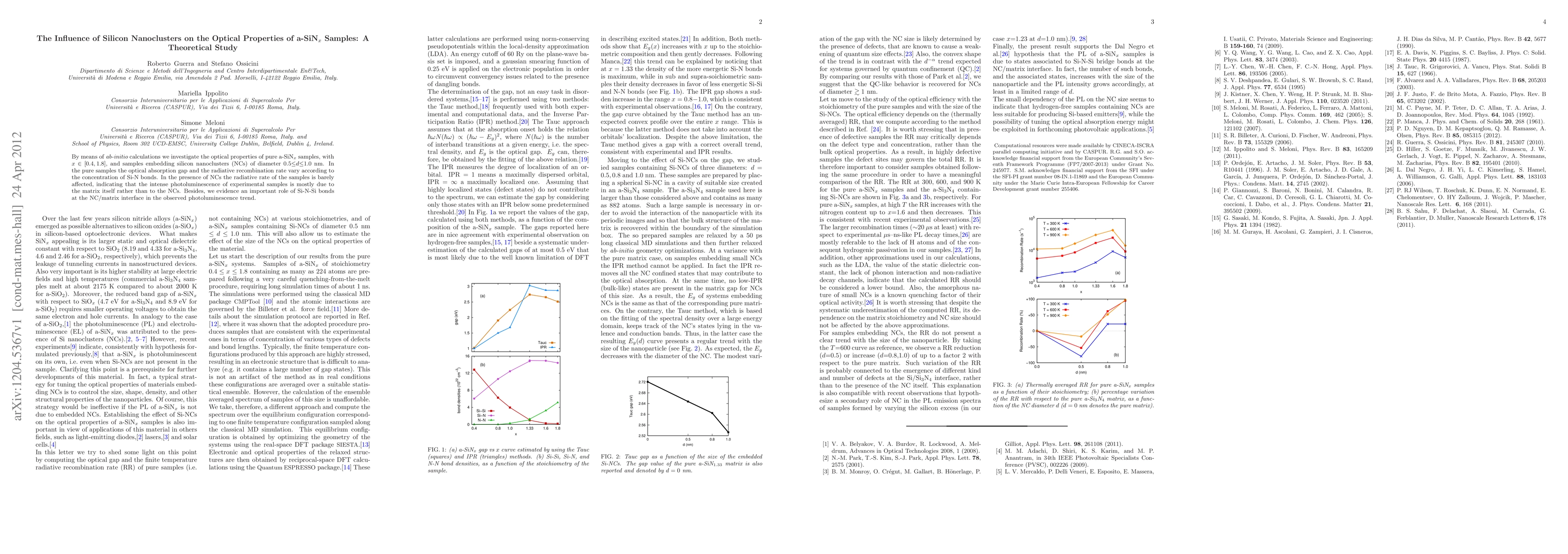 By means of ab-initio calculations we investigate the optical properties of pure a-SiN$_x$ samples, with $x \in [0.4, 1.8]$, and samples embedding silicon nanoclusters (NCs) of diameter $0.5 \leq d \leq 1.0$ nm. In the pure samples the optical absorption gap and the radiative recombination rate vary according to the concentration of Si-N bonds. In the presence of NCs the radiative rate of the samples is barely affected, indicating that the intense photoluminescence of experimental samples is mostly due to the matrix itself rather than to the NCs. Besides, we evidence an important role of Si-N-Si bonds at the NC/matrix interface in the observed photoluminescence trend.