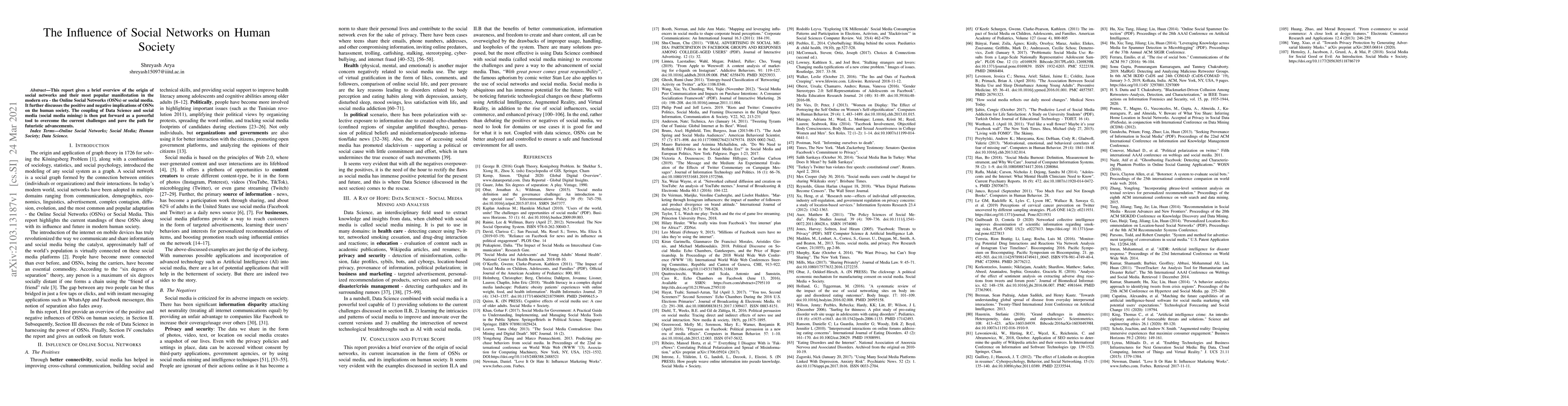This report gives a brief overview of the origin of social networks and their most popular manifestation in the modern era - the Online Social Networks (OSNs) or social media. It further discusses the positive and negative implications of OSNs on human society. The coupling of Data Science and social media (social media mining) is then put forward as a powerful tool to overcome the current challenges and pave the path for futuristic advancements