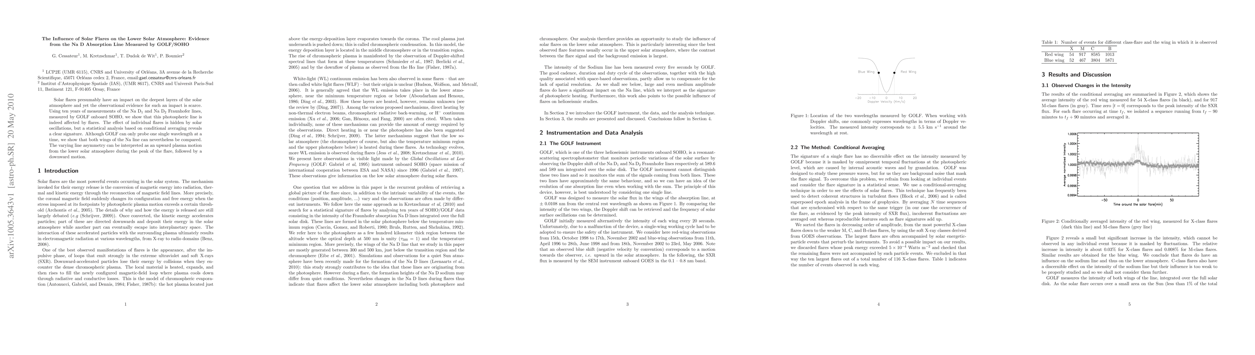This study demonstrates that solar flares influence the lower solar atmosphere through changes in the Na D absorption line measured by GOLF/SOHO. Statistical analysis reveals that while individual flares are obscured by solar oscillations, a clear signature of flare-induced plasma motion is evident when averaged over multiple events.