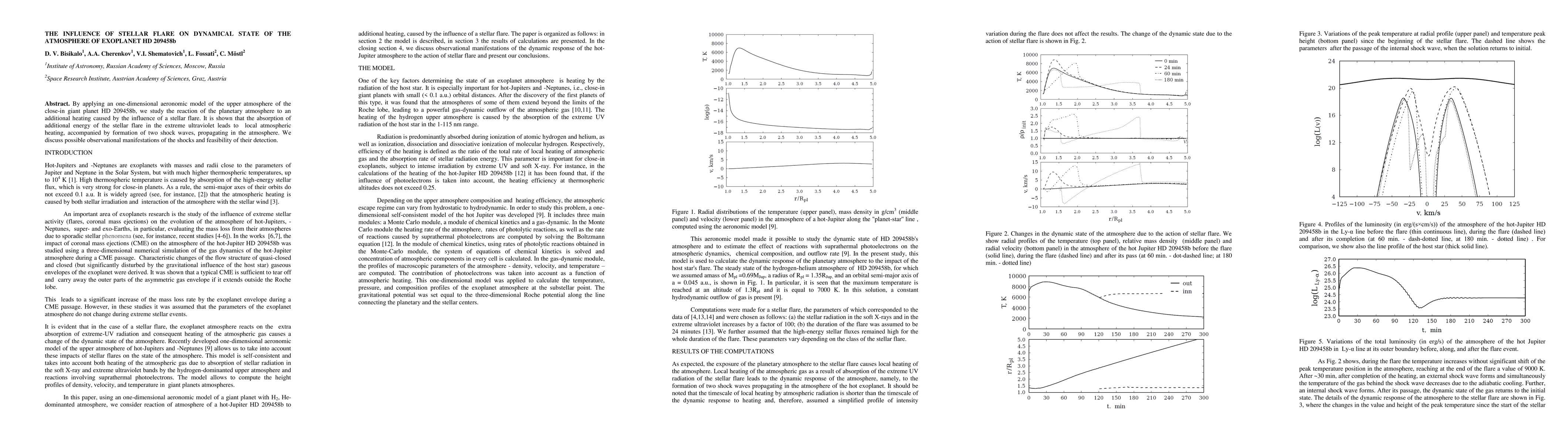 This study uses a one-dimensional aeronomic model to examine the impact of stellar flares on the atmosphere of the exoplanet HD 209458b, revealing that the additional heating from the flare generates local atmospheric heating and two propagating shock waves, with potential observational implications for their detection.