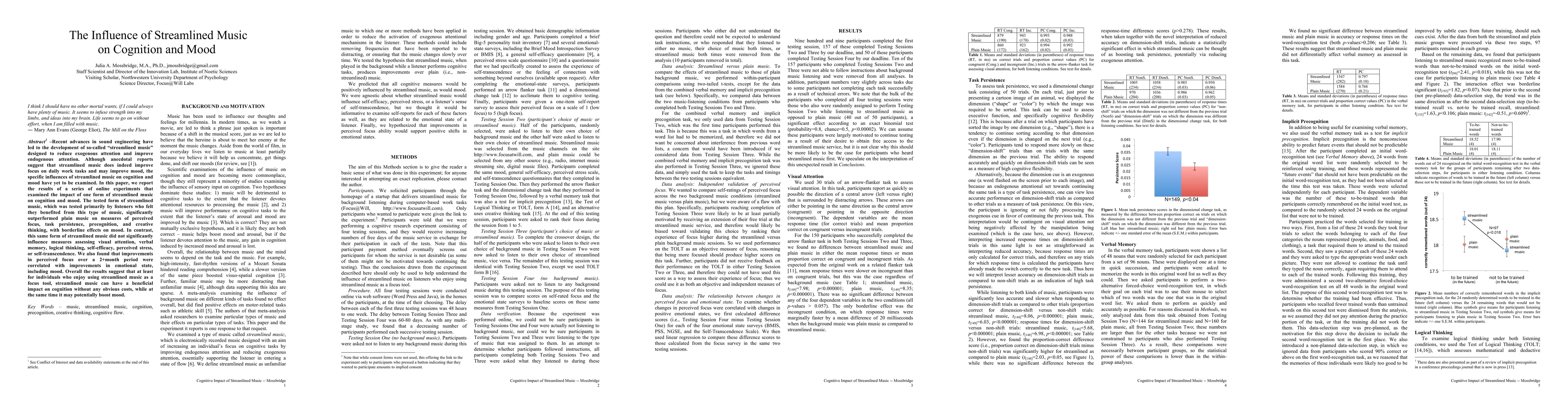 Online experiments were conducted to examine the impact of streamlined music on cognition and mood.