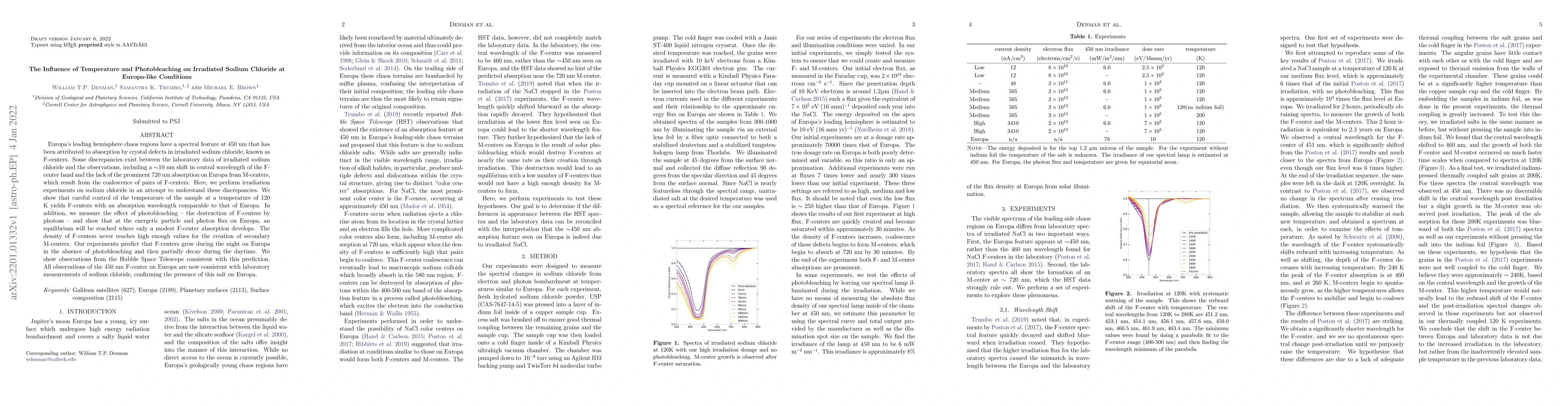 This study investigates the influence of temperature and photobleaching on irradiated sodium chloride under Europa-like conditions, finding that F-centers at 120 K match the spectral features observed on Europa. The experiments predict a daily cycle of F-center growth and decay, consistent with Hubble Space Telescope observations, confirming the presence of sodium chloride on Europa.