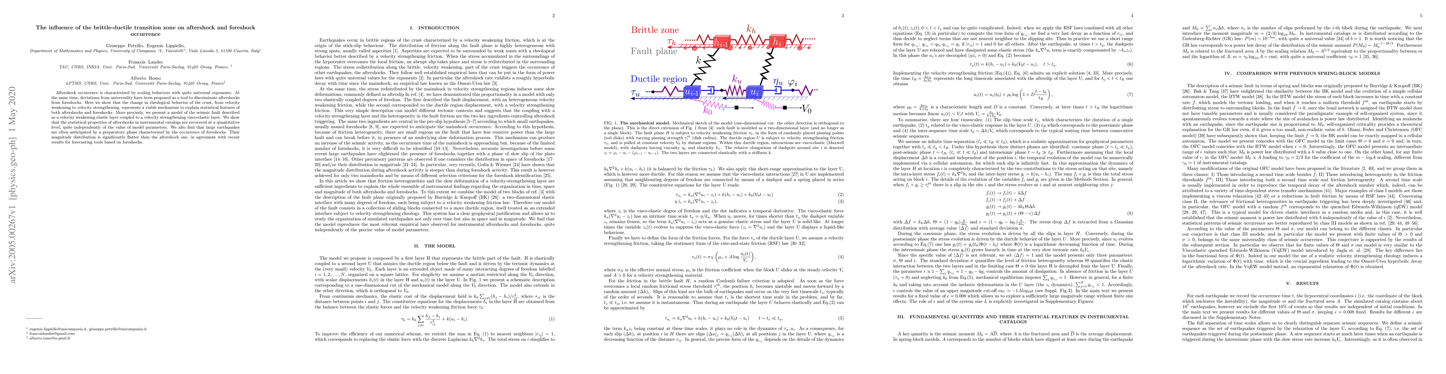 This research explores how the brittle-ductile transition zone affects the occurrence of aftershocks and foreshocks. It presents a model where a velocity weakening elastic layer transitions to a velocity strengthening visco-elastic layer, explaining the statistical features of both aftershocks and foreshocks, with large earthquakes often preceded by foreshocks showing a flatter magnitude distribution.