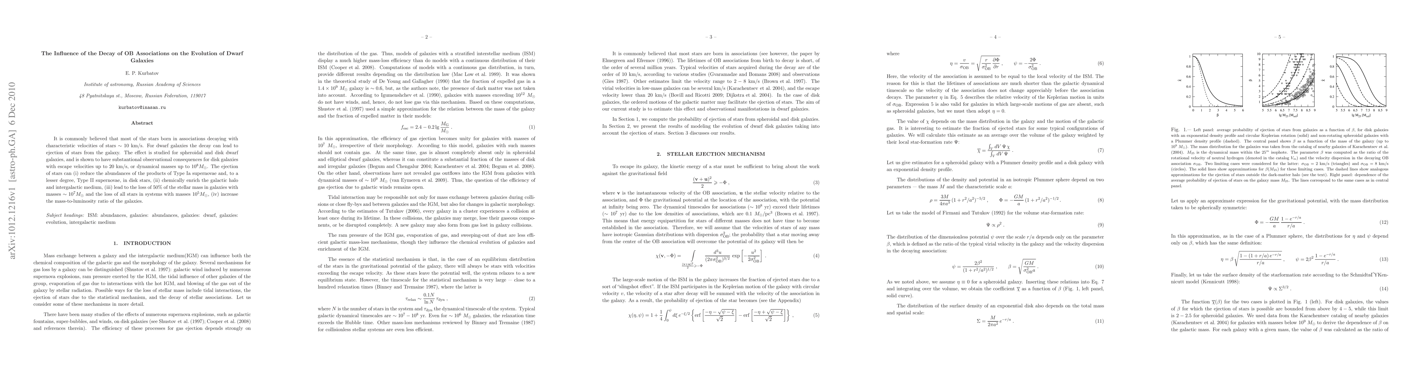 It is commonly believed that most of the stars born in associations decaying with characteristic velocities of stars ~10 km/s. For dwarf galaxies the decay can lead to ejection of stars from the galaxy. The effect is studied for spheroidal and disk dwarf galaxies, and is shown to have substantional observational consequences for disk galaxies with escape velocities up to 20 km/s, or dynamical masses up to 10^8 M_sol. The ejection of stars can (i) reduce the abundances of the products of Type Ia supernovae and, to a lesser degree, Type II supernovae, in disk stars, (ii) chemically enrich the galactic halo and intergalactic medium, (iii) lead to the loss of 50% of the stellar mass in galaxies with masses ~10^7 M_sol and the loss of all stars in system with masses 10^5 M_sol, (iv) increase the mass-to-luminosity ratio of the galaxies.