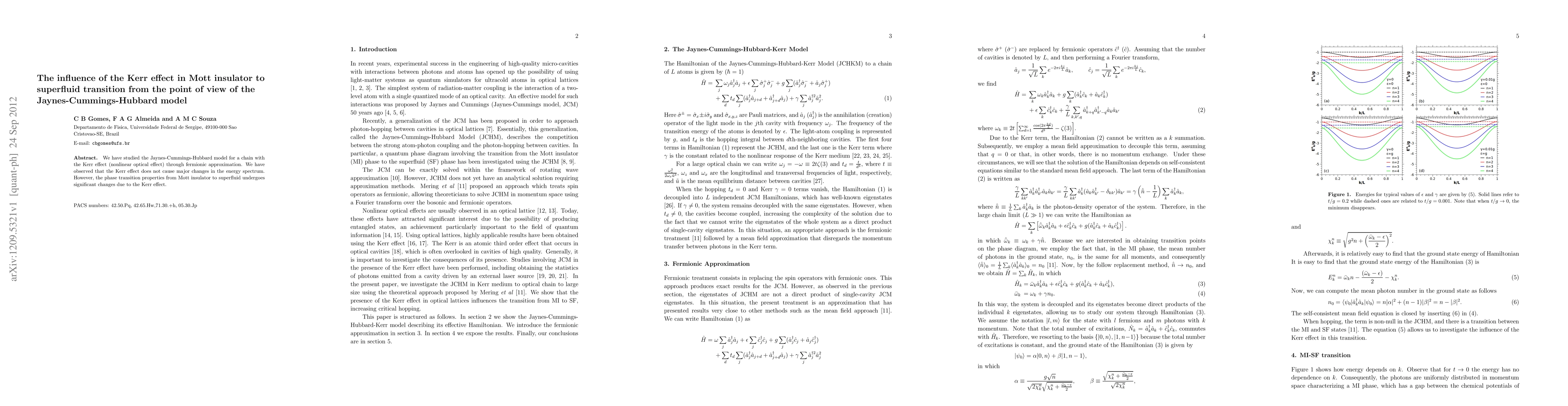 Summary: This study investigates the Jaynes-Cummings-Hubbard model incorporating the Kerr effect, finding minimal impact on the energy spectrum but significant alterations in the Mott insulator to superfluid phase transition. The Kerr effect thus plays a crucial role in the transition dynamics.