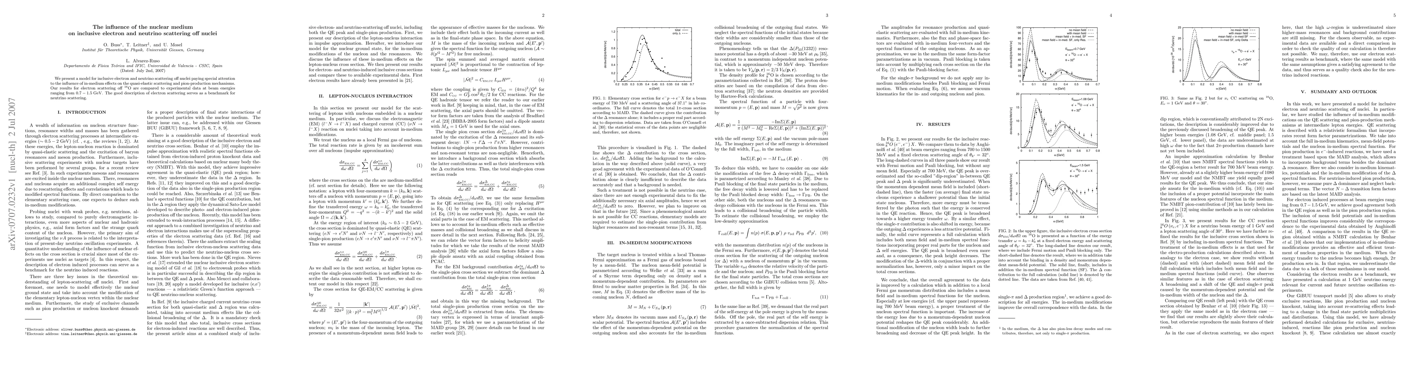 This paper develops a model for inclusive electron and neutrino scattering off nuclei, focusing on in-medium effects in quasi-elastic scattering and pion production. The model's accuracy is validated by comparing electron scattering results for Oxygen with experimental data, providing a benchmark for neutrino scattering predictions.