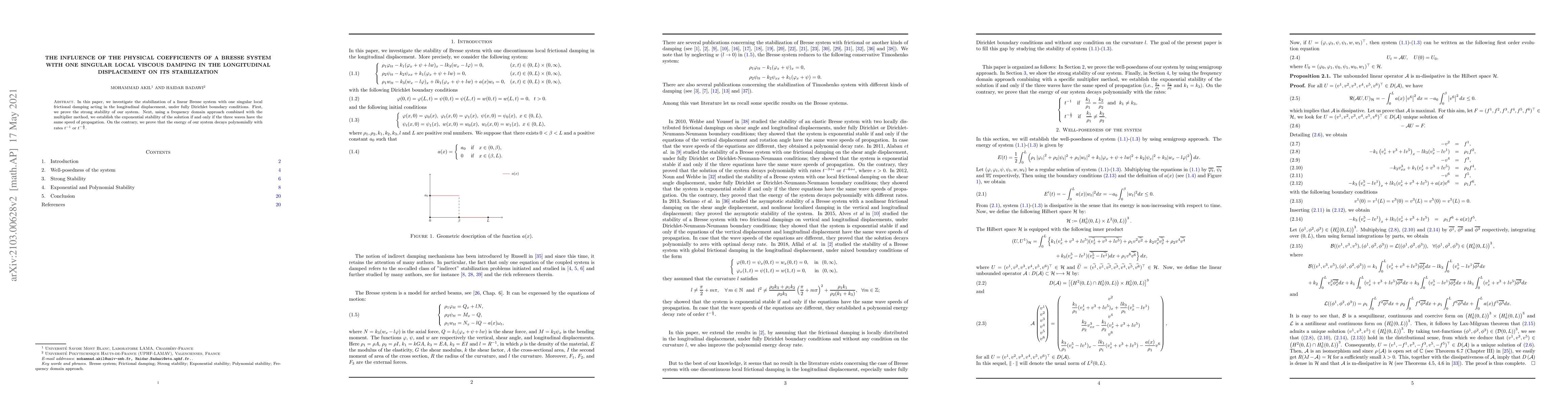 This paper examines the stabilization of a linear Bresse system with singular local viscous damping, proving strong stability and establishing exponential stability when all three waves propagate at the same speed. Otherwise, the system's energy decays polynomially.