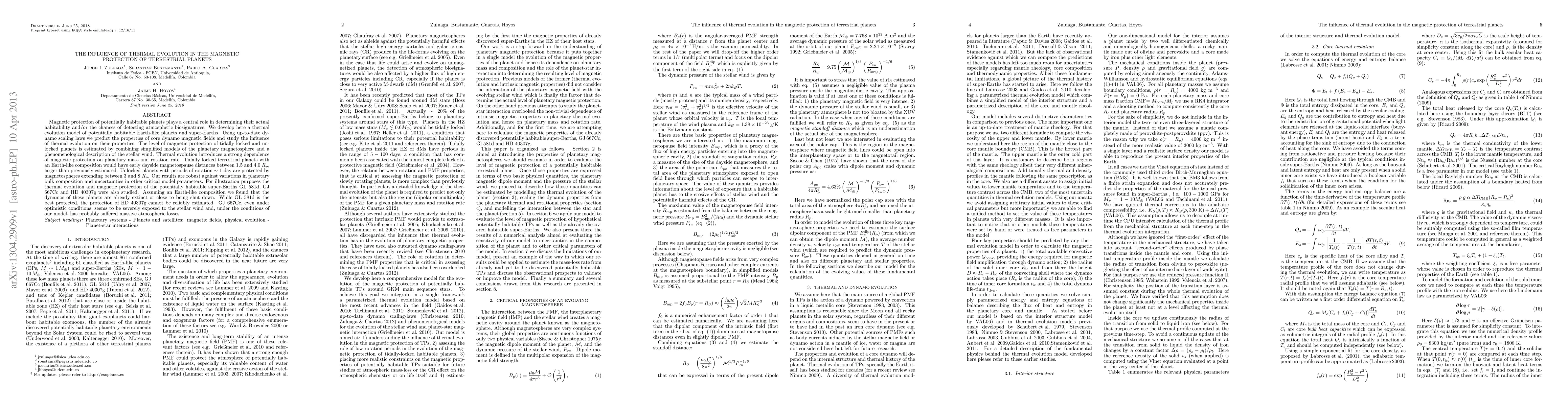 This paper develops a thermal evolution model to predict the magnetic protection of Earth-like and super-Earth planets, finding that thermal evolution strongly influences magnetic fields based on planetary mass and rotation rate. The study shows that tidally locked planets have larger magnetopause distances than previously estimated, while super-Earths like GL 581d may still be protected, but GJ 667Cc likely suffered significant atmospheric loss.