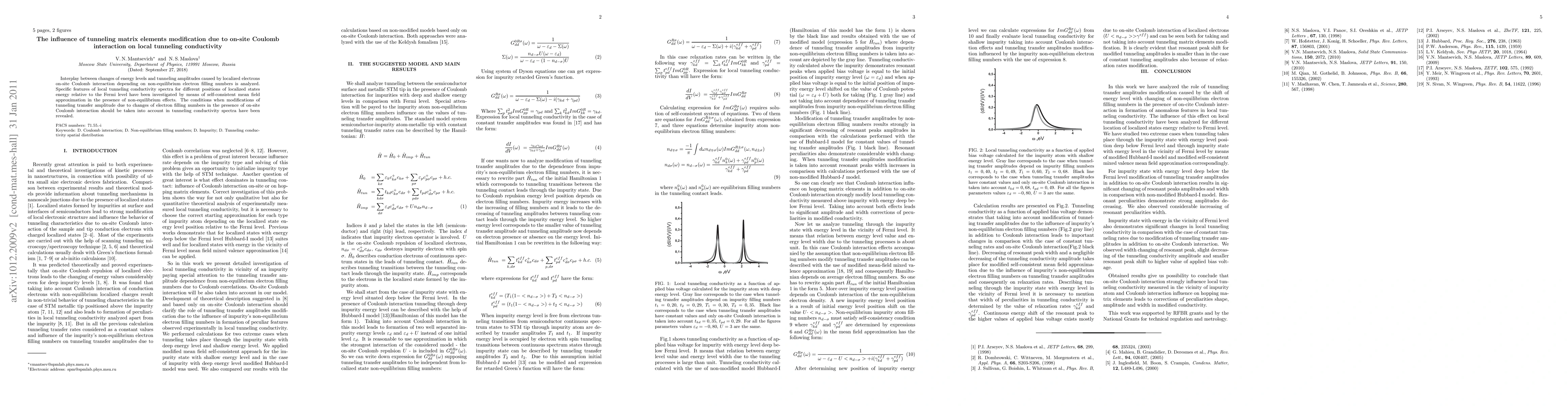 This paper investigates how on-site Coulomb interaction modifies tunneling matrix elements, affecting local tunneling conductivity. It reveals specific conditions under which changes in electron filling numbers, influenced by non-equilibrium effects, significantly alter tunneling transfer amplitudes and should be considered in tunneling conductivity spectra.
