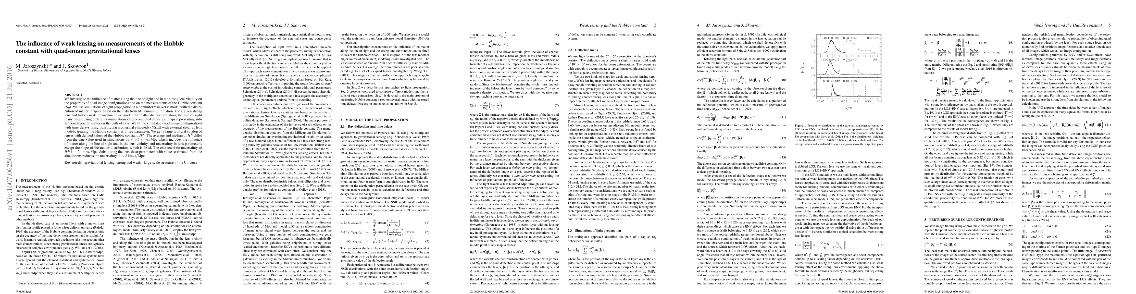 This study examines how matter along the line of sight and in the vicinity of strong gravitational lenses affects the properties of quad image configurations and the measurement of the Hubble constant (H0). The research uses simulations to model light propagation in a nonuniform universe, finding that the derived Hubble constant, Hfit, has an uncertainty of ~3 km/s/Mpc, which can be reduced to ~2 km/s/Mpc by refining lens parameters.
