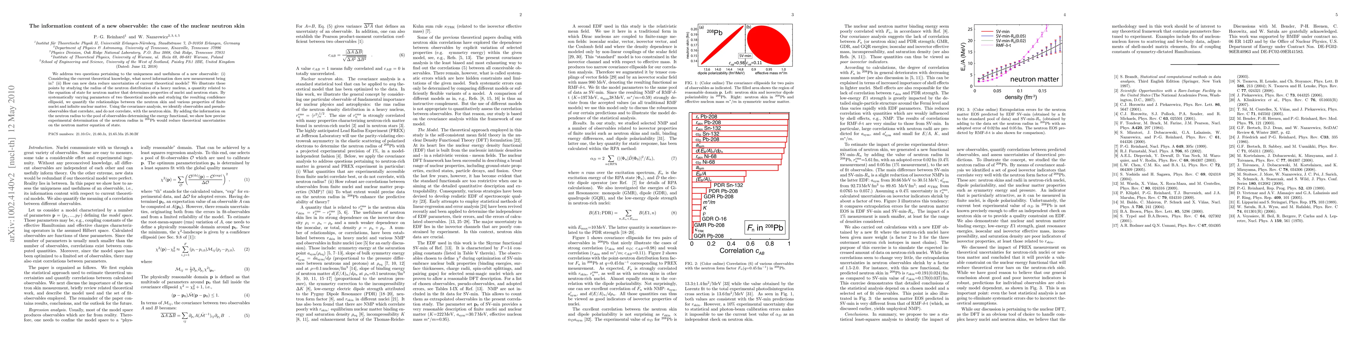We address two questions pertaining to the uniqueness and usefulness of a new observable: (i) Considering the current theoretical knowledge, what novel information does new measurement bring in? (ii) How can new data reduce uncertainties of current theoretical models? We illustrate these points by studying the radius of the neutron distribution of a heavy nucleus, a quantity related to the equation of state for neutron matter that determines properties of nuclei and neutron stars. By systematically varying parameters of two theoretical models and studying the resulting confidence ellipsoid, we quantify the relationships between the neutron skin and various properties of finite nuclei and infinite nuclear matter. Using the covariance analysis, we identify observables and pseudo-observables that correlate, and do not correlate, with the neutron skin. By adding the information on the neutron radius to the pool of observables determining the energy functional, we show how precise experimental determination of the neutron radius in $^{208}$Pb would reduce theoretical uncertainties on the neutron matter equation of state.