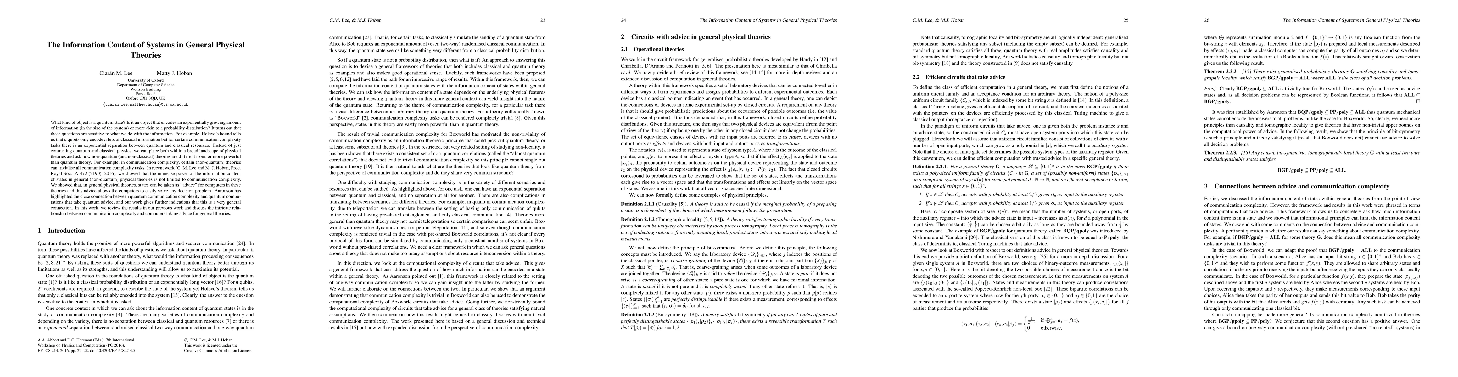 This paper explores the information content of quantum and non-quantum physical theories, demonstrating that non-quantum theories can encode significantly more information than classical physics, allowing computers to solve any decision problem. It highlights the general connection between communication complexity and computational power in various physical theories.