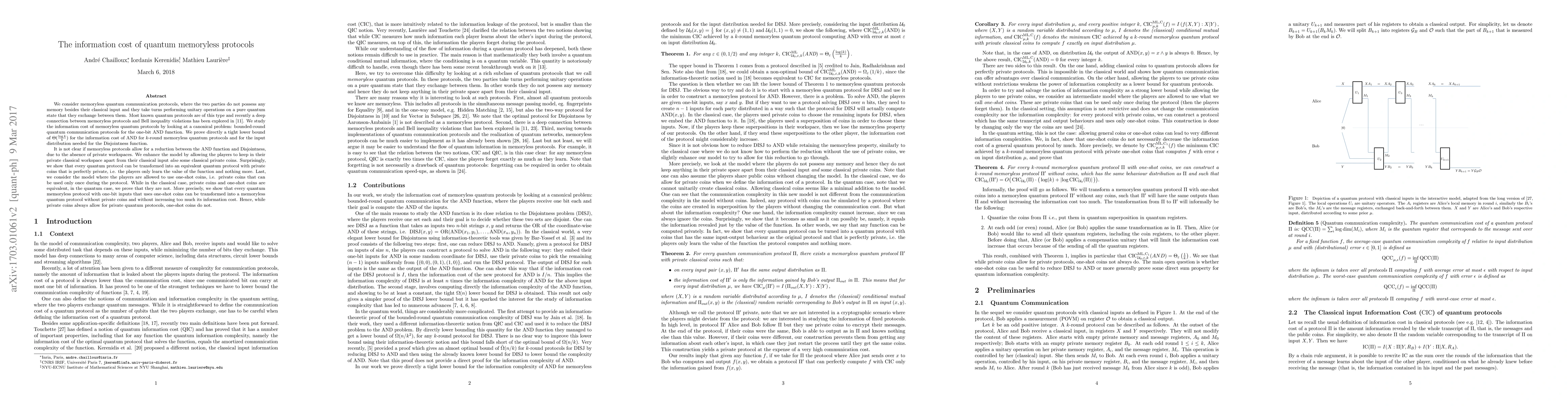 We consider memoryless quantum communication protocols, where the two parties do not possess any memory besides their classical input and they take turns performing unitary operations on a pure quantum state that they exchange between them. Most known quantum protocols are of this type and recently a deep connection between memoryless protocols and Bell inequality violations has been explored recently by Buhrman et al. We study the information cost of memoryless quantum protocols by looking at a canonical problem: bounded-round quantum communication protocols for the one-bit AND function. We prove directly a tight lower bound of $\Theta(\log(k) / k)$ for the information cost of AND for $k$-round memoryless quantum protocols and for the input distribution needed for the Disjointness function. It is not clear if memoryless protocols allow for a reduction between AND and Disjointness, due to the absence of private workspaces. We enhance the model by allowing the players to keep in their private classical workspace apart from their input also some classical private coins. Surprisingly, we show that every quantum protocol can be transformed into an equivalent quantum protocol with private coins that is perfectly private, i.e. the players only learn the value of the function and nothing more. Last, we consider the model where the players are allowed to use one-shot coins, i.e. private coins that can be used only once during the protocol. While in the classical case, private coins and one-shot coins are equivalent, in the quantum case, we prove that they are not. More precisely, we show that every quantum memoryless protocol with one-bit inputs that uses one-shot coins can be transformed into a memoryless quantum protocol without private coins and without increasing too much its information cost. Hence, while private coins always allow for private quantum protocols, one-shot coins do not.