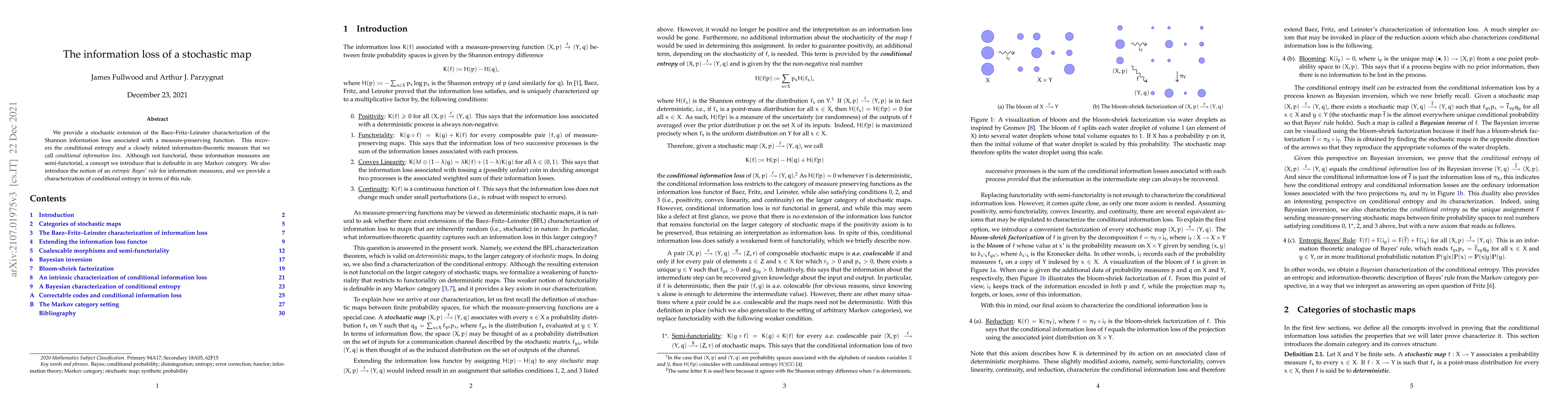 We provide a stochastic extension of the Baez-Fritz-Leinster characterization of the Shannon information loss associated with a measure-preserving function. This recovers the conditional entropy and a closely related information-theoretic measure that we call conditional information loss. Although not functorial, these information measures are semi-functorial, a concept we introduce that is definable in any Markov category. We also introduce the notion of an entropic Bayes' rule for information measures, and we provide a characterization of conditional entropy in terms of this rule.