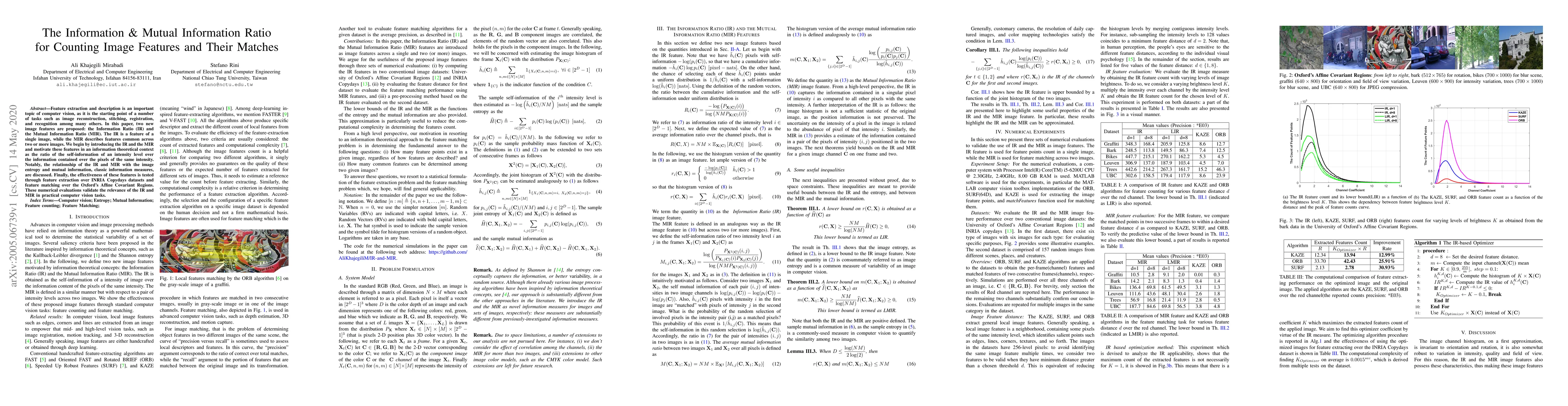 Feature extraction and description is an important topic of computer vision, as it is the starting point of a number of tasks such as image reconstruction, stitching, registration, and recognition among many others. In this paper, two new image features are proposed: the Information Ratio (IR) and the Mutual Information Ratio (MIR). The IR is a feature of a single image, while the MIR describes features common across two or more images.We begin by introducing the IR and the MIR and motivate these features in an information theoretical context as the ratio of the self-information of an intensity level over the information contained over the pixels of the same intensity. Notably, the relationship of the IR and MIR with the image entropy and mutual information, classic information measures, are discussed. Finally, the effectiveness of these features is tested through feature extraction over INRIA Copydays datasets and feature matching over the Oxfords Affine Covariant Regions. These numerical evaluations validate the relevance of the IR and MIR in practical computer vision tasks