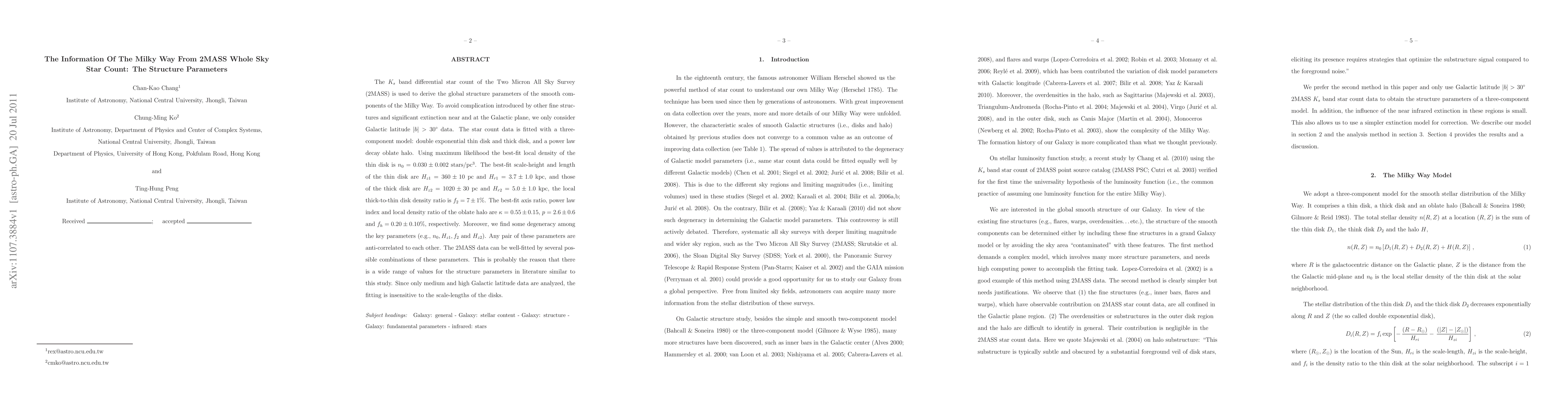 This study uses 2MASS Ks band star count data at high Galactic latitudes to derive the global structure parameters of the Milky Way's smooth components, finding best-fit values for the thin and thick disks and an oblate halo. The analysis reveals some parameter degeneracy, leading to a wide range of reported structural parameters in the literature.