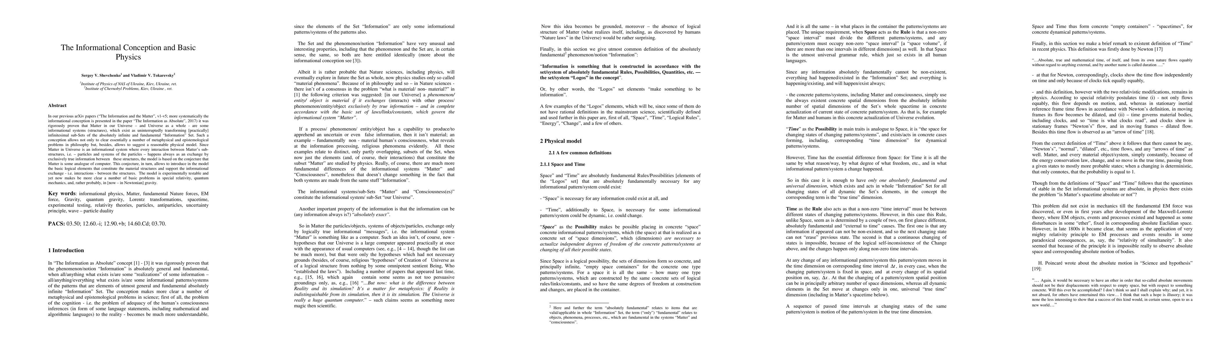 This paper proposes a new model of matter as an informational system that exchanges true information between its sub-structures, similar to a computer, and could explain basic problems in special relativity, quantum mechanics, and gravity.