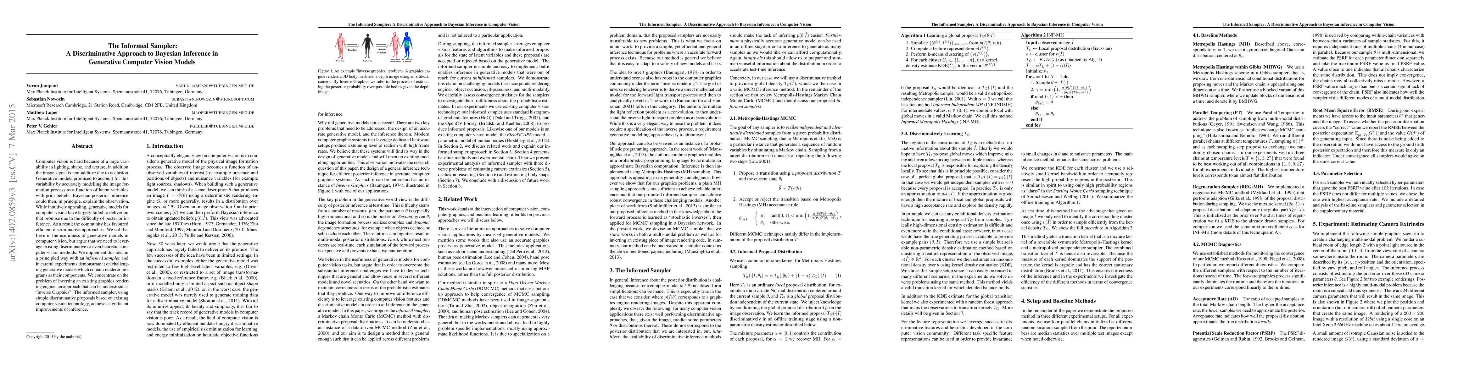 This paper proposes an "informed sampler" to enhance Bayesian inference in generative computer vision models by integrating discriminative computer vision techniques. The approach demonstrates significant improvements in inverting graphics rendering engines, showcasing the potential of combining generative and discriminative methods.