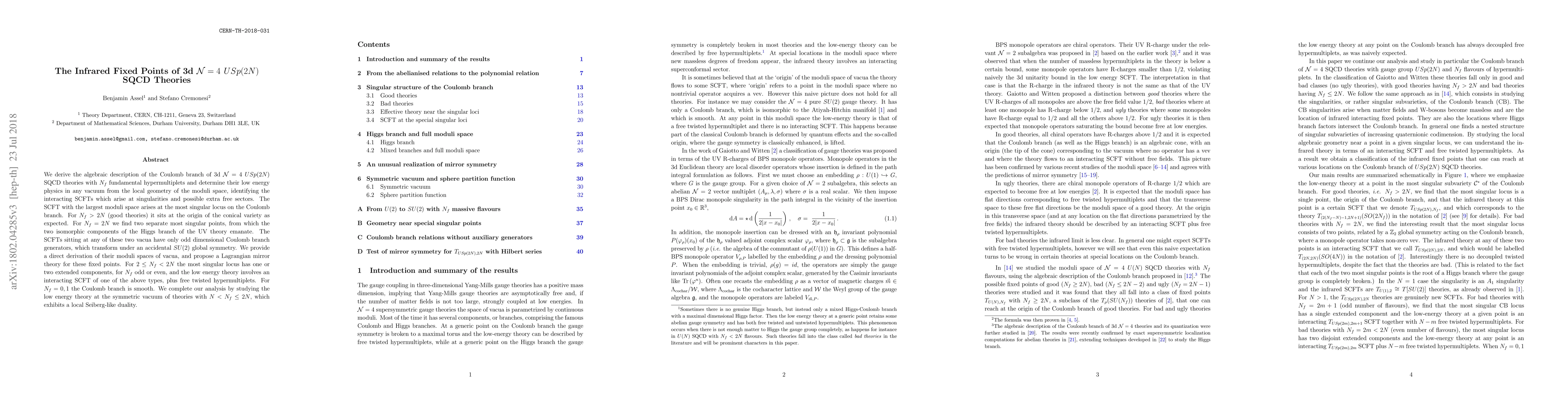 Researchers derived an algebraic description of 3d SQCD theories with $N_f$ fundamental hypermultiplets, identifying the low energy physics at singularities and proposing a Lagrangian mirror theory for certain fixed points.