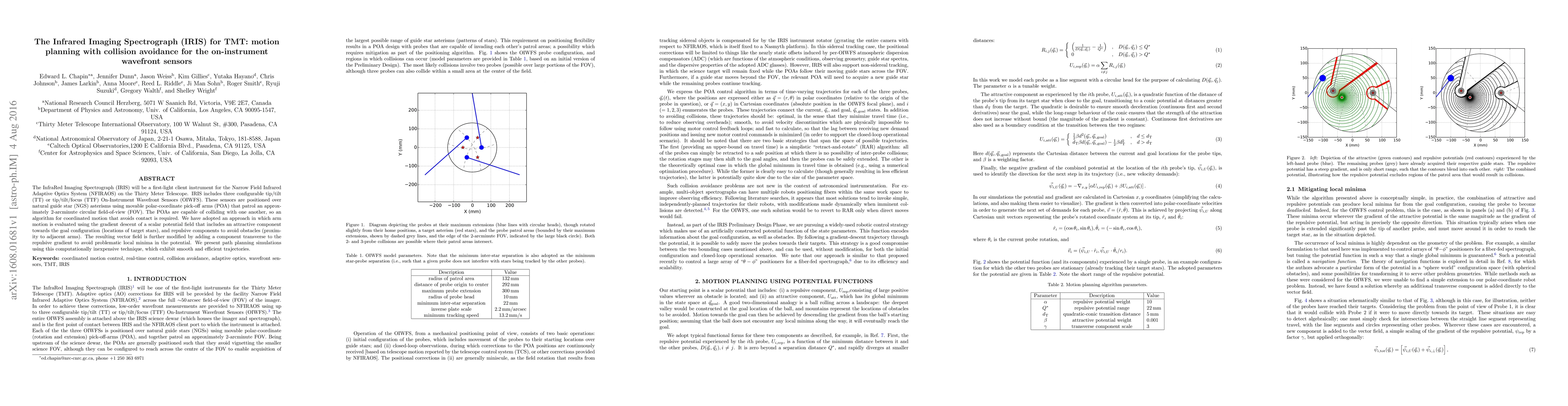 The Infrared Imaging Spectrograph (IRIS) uses motion planning with collision avoidance to navigate its wavefront sensors around natural guide stars. The approach results in smooth and efficient trajectories.