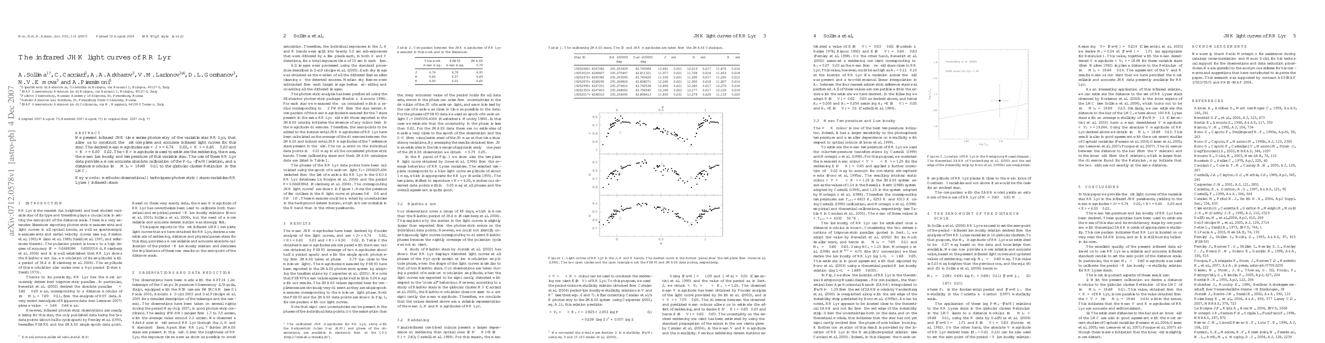 The paper presents the first infrared JHK light curves of RR Lyr, enabling more accurate determination of its mean magnitudes, temperature, and luminosity.