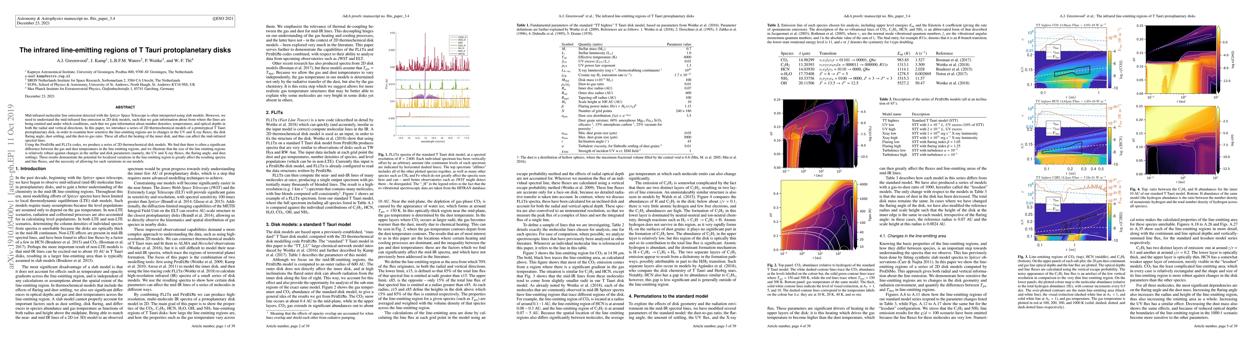 This paper introduces 2D thermochemical models of T Tauri protoplanetary disks to understand the mid-infrared line emission, revealing significant differences between gas and dust temperatures in line-emitting regions. The study shows that while the size of these regions is relatively stable, localized variations can greatly affect spectral lines, highlighting the need for more complex models.