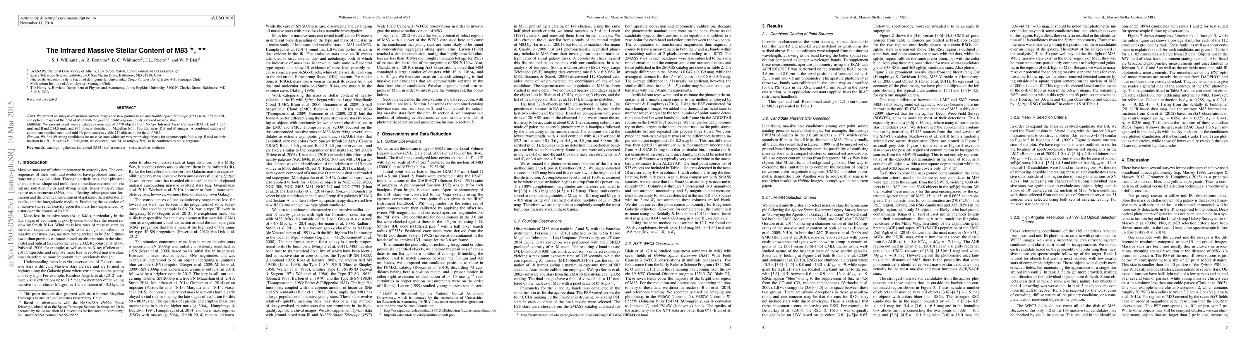This study analyzes Spitzer and HST images to identify rare, dusty, evolved massive stars in the galaxy M83, compiling catalogs of 3778 and 975 objects respectively. The research identifies 49 strong candidates for massive stars, with at least 24 expected to be confirmed as red supergiants.