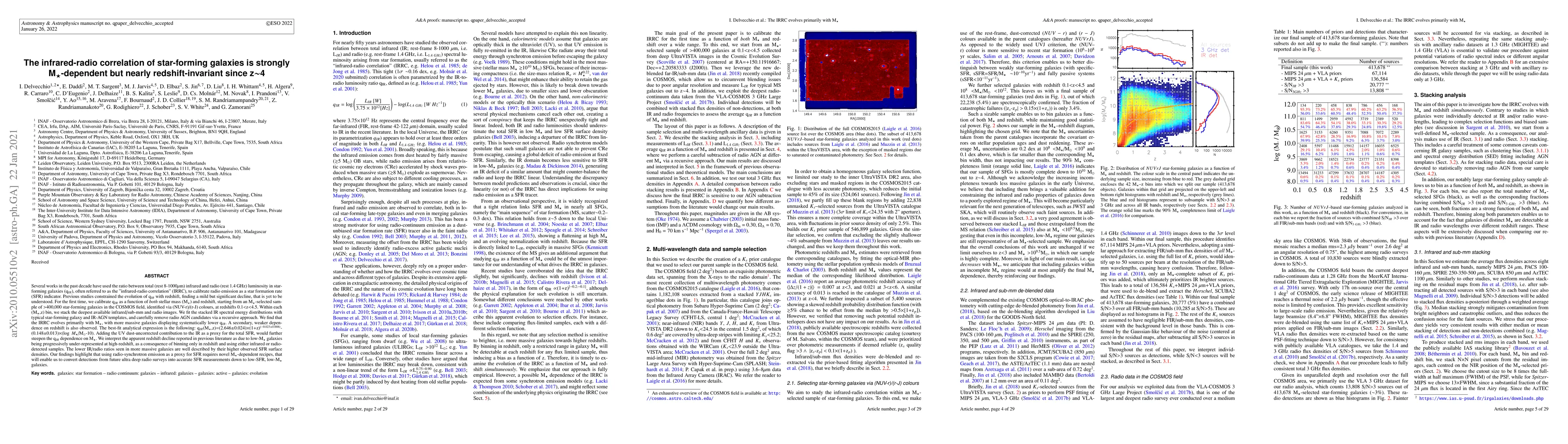 This paper investigates the infrared-radio correlation (IRRC) in star-forming galaxies, finding that it is primarily dependent on stellar mass (M$_{\star}$) rather than redshift. The study reveals that more massive galaxies exhibit lower IR/radio ratios, necessitating M$_{\star}$-dependent calibrations for accurate star formation rate measurements from radio surveys.