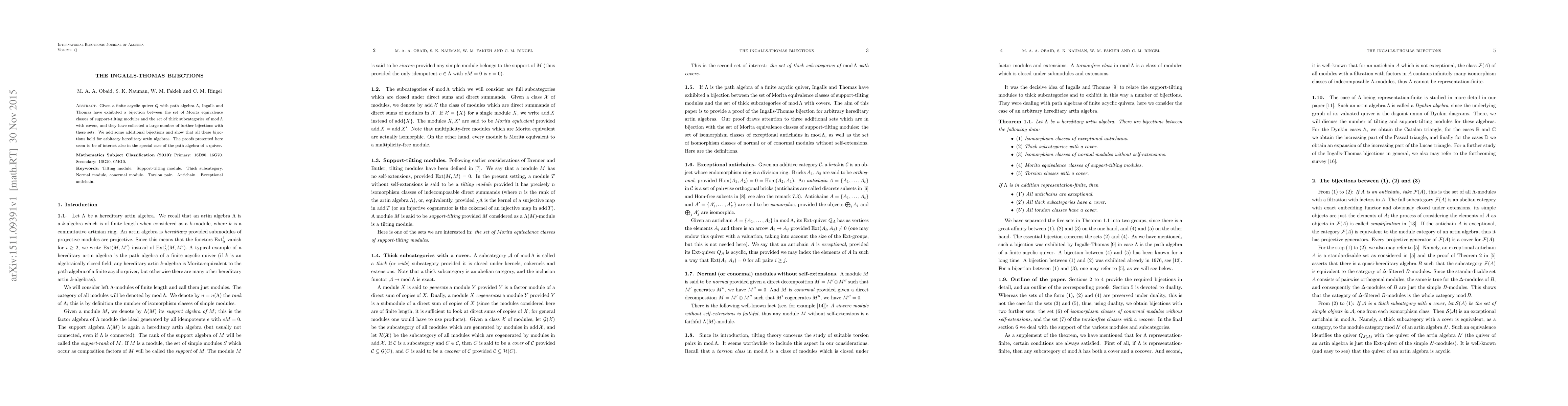 The paper presents a comprehensive proof of bijections between various module-theoretic objects for hereditary Artin algebras, extending Ingalls and Thomas' original work on path algebras of finite acyclic quivers.