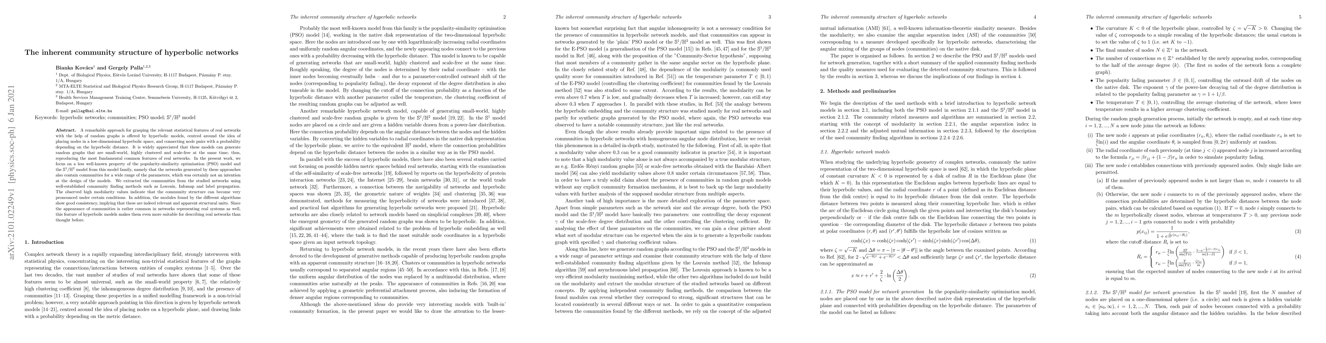 Hyperbolic networks can spontaneously generate communities with high modularity values, a feature that makes them suitable for describing real-world networks. This unexpected property is observed in networks generated by the popularity-similarity optimization (PSO) model and the $rac{1}{ ext{H}}^2$ model.